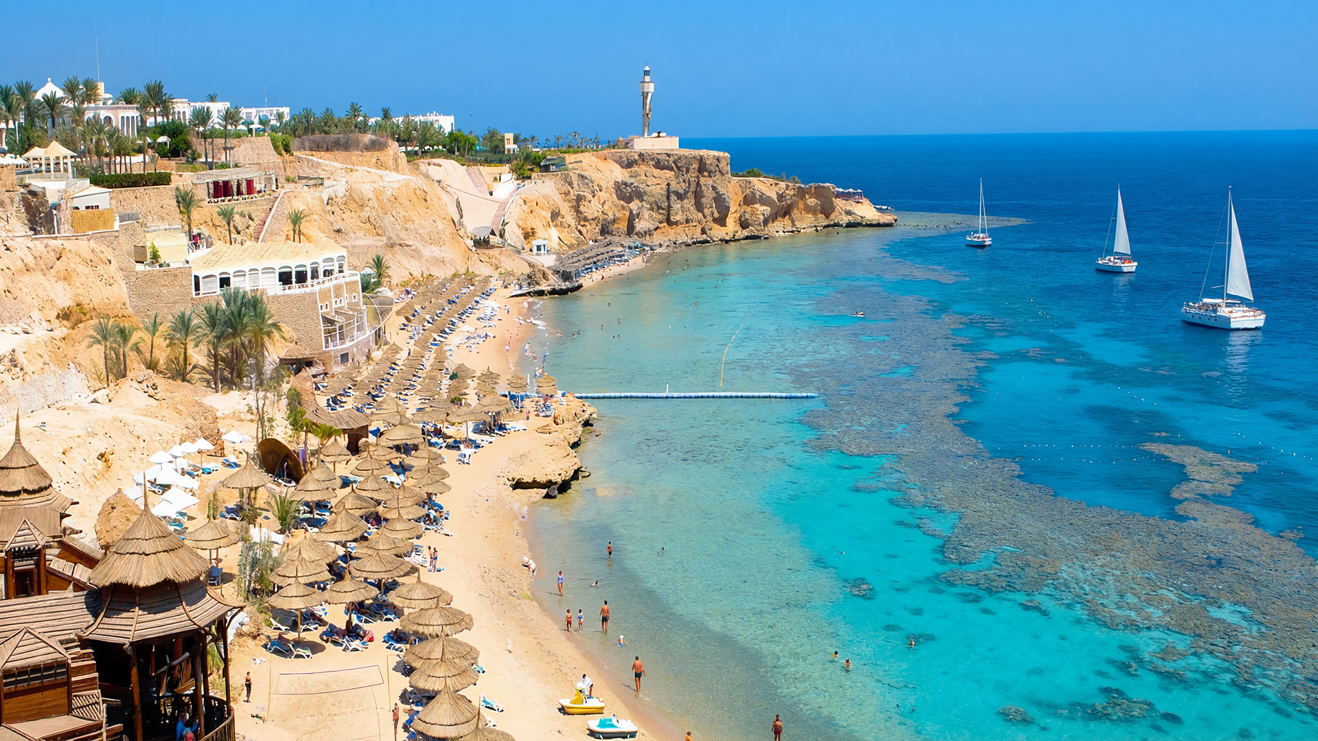 Температура воды может незначительно варьироваться в зависимости от бухты. В хорошо защищенных заливах, таких как Шаркс-Бей или Набк, вода часто на 1-2 градуса теплее из-за малой глубины и отсутствия течений. Утреннее море может казаться свежее, но уже к полудню купание становится очень приятным.