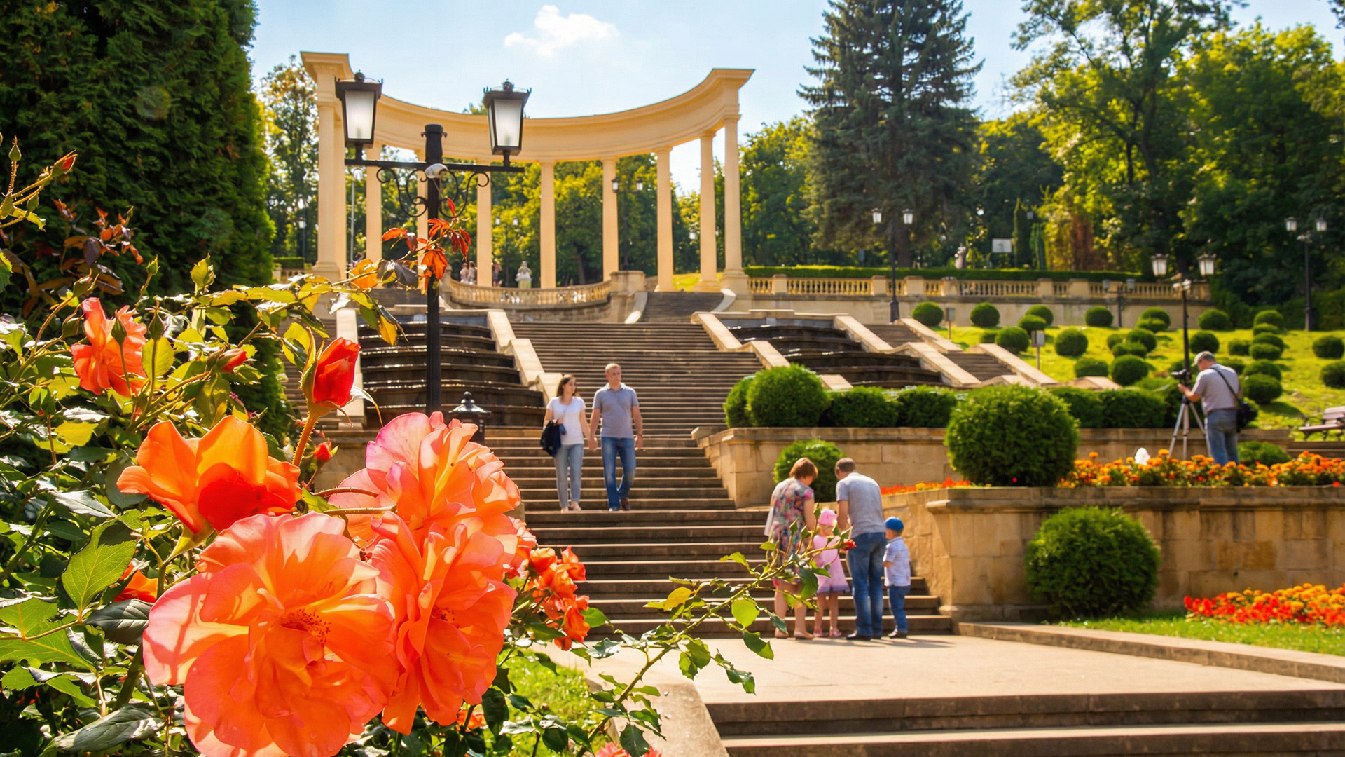 Главная точка притяжения — Курортный парк. В апреле здесь оживает природа: распускаются первоцветы, зеленеют газоны. Прогуляйтесь по терренкурам разной сложности, дойдите до Храма Воздуха и Синих гор. Воздух идеально чистый, а виды открываются без летней дымки. Для фото лучшие места — у Цветочных часов и на смотровой площадке над Красными камнями.
