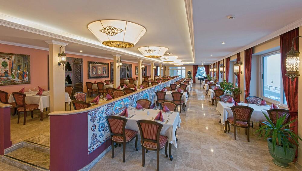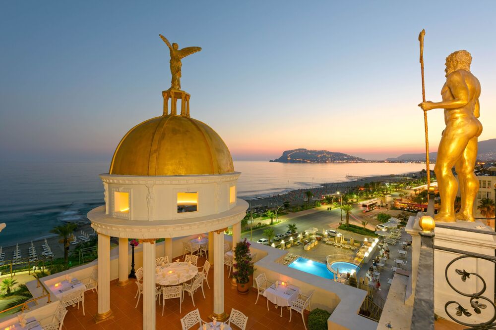 Отель с пышным садом, оформленный в древнеримском стиле, принимает только гостей старше 16 лет. Находится недалеко от центра города и таких знаковых мест, как крепость Аланьи, Красная башня и пляж Клеопатры.