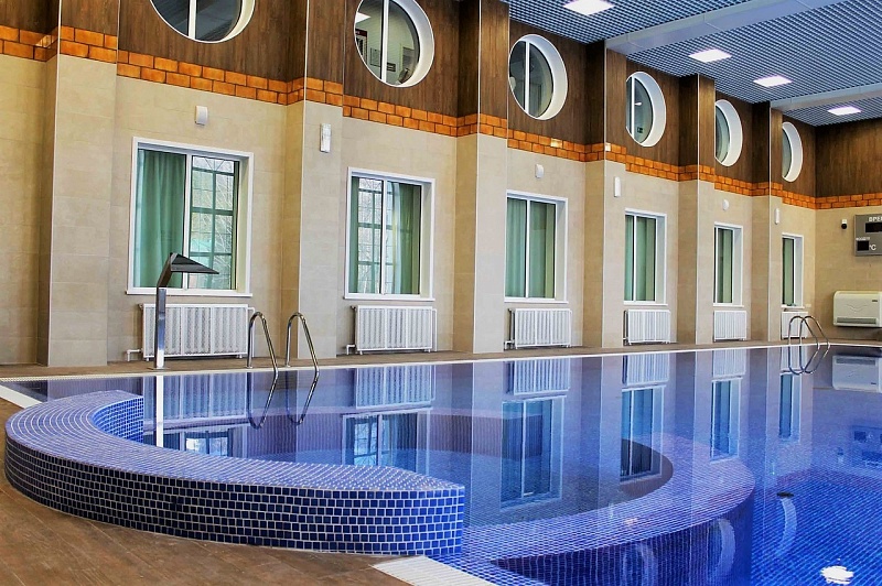 Весной 2019 года состоялось открытие нового, обновленного после капитального ремонта, плавательного бассейна санатория. Плавательный бассейн является одним из самых больших на курорте – это одно из основных преимуществ санатория. Глубина - от 1,38м до 2м, постоянную комфортную температуру поддерживает современная система климат-контроля и вентиляции.