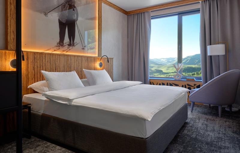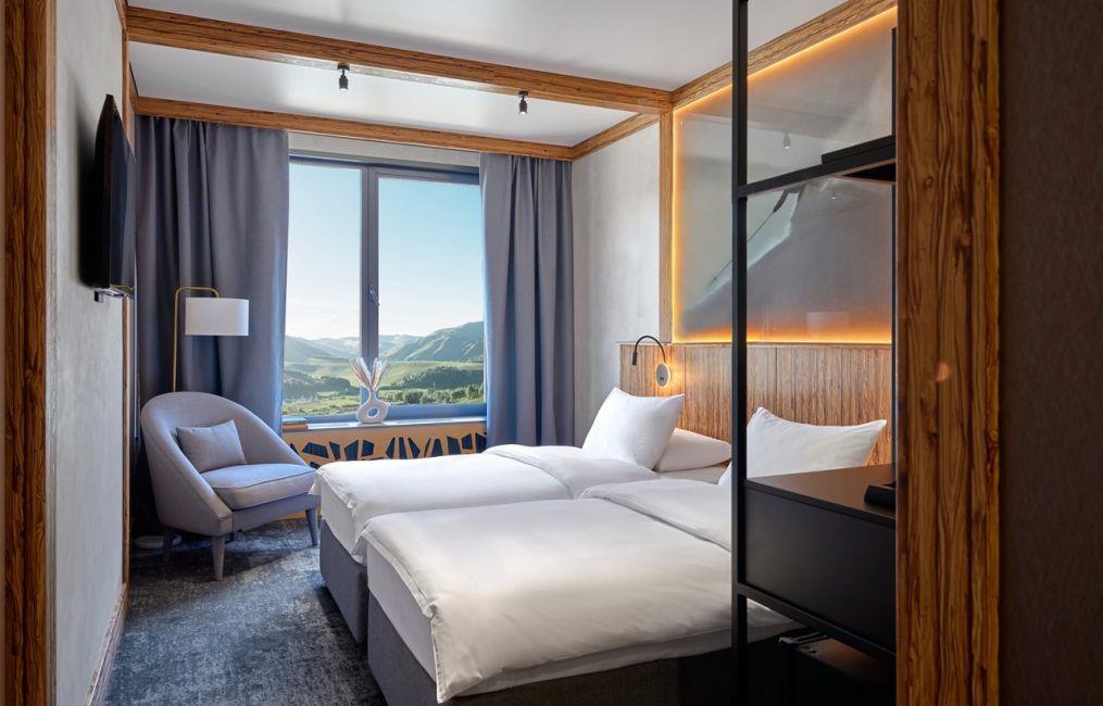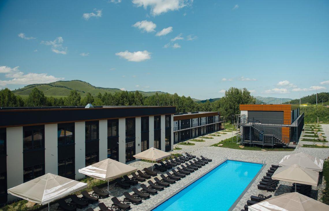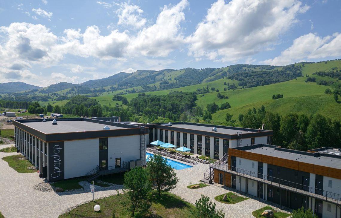 "Среди гор" - самый большой модульный отель в России, расположенный в живописном уголке Алтая, у подножия горы Каим, на территории курорта Altai Palace, идеальный вариант для размещения групповых туров и корпоративных выездов. К услугам гостей современные, уютные номера со всеми удобствами. В центральной части отеля расположен открытый подогреваемый бассейн, работающий в период с мая по сентябрь и оборудованный зоной для принятия солнечных ванн. На 2 этаже основного корпуса расположен лаунж-бар, где днем гости отеля могут заказать напитки, а в вечернее время посмотреть спортивные игры на большом широкоформатном экране или просто провести время с близкими и друзьями. На территории отеля работает гастрокорт Матрешка – первое и единственное гастро-пространство такого формата на территории Алтайского края. В основном зале на завтрак, обед и ужин гостям доступны блюда русской кухни по системе "шведский стол", а в остальных зонах расположены кафетерий с разнообразными напитками в формате самообслуживания, пекарня и кондитерская со свежим хлебом, пирогами и десертами, а также слот-холл. По вечерам гастрокорт превращается в стильный бар, где можно продегустировать авторские коктейли от шеф-бармена и послушать атмосферные Dj-сеты