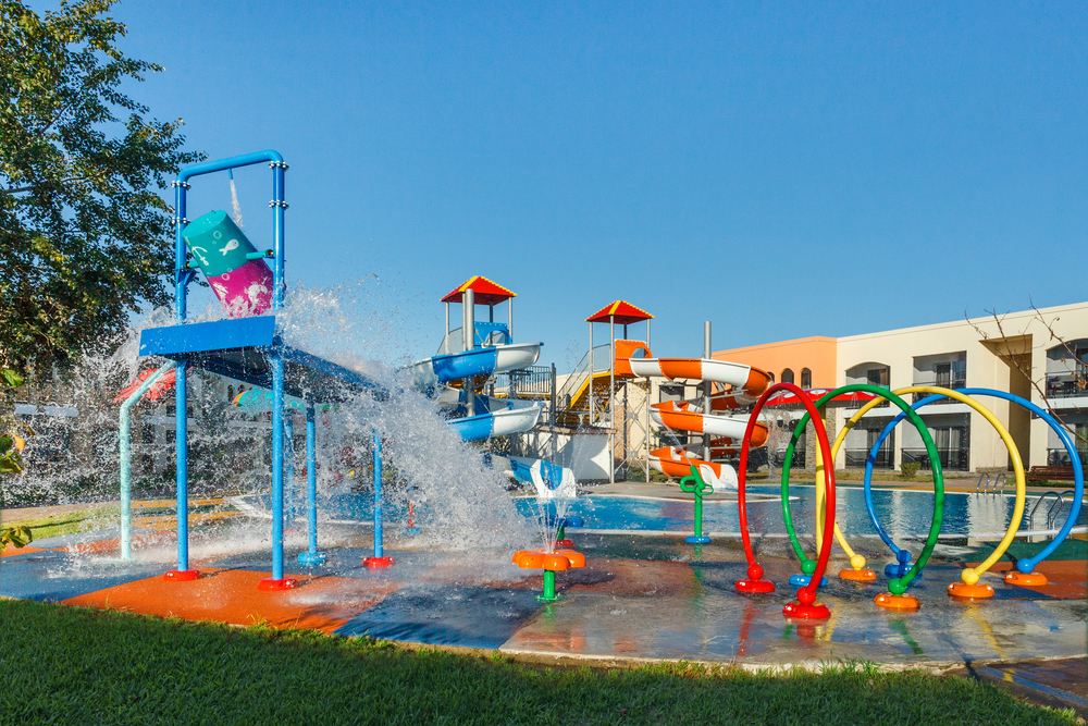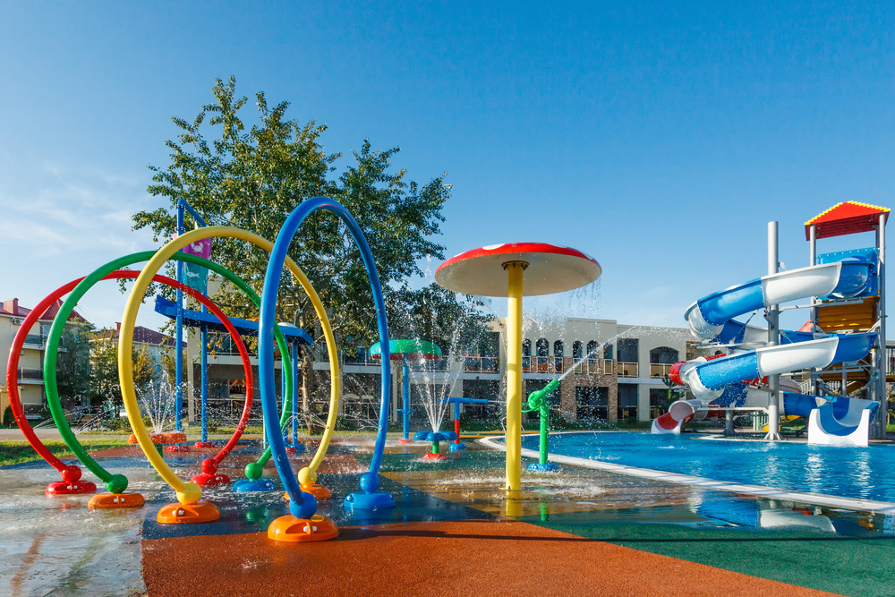 - открытый аквакомплекс - общая площадь водного пространства на территории составляет более 1200 кв.м разной формы и глубины для всех возрастов, а именно: плавательный бассейн с подогреваемой водой (25-метровый, глубина 170 см), детский бассейн с аквагоркой и подогревом (глубина 60 см), Spray Park- более 10 видов интерактивных развлечений и приспособлений для игр с водой, бассейн с 3 горками, высотой от 3,5 до 5 м и слайдом, Lounge бассейн с пологим дном от 90 до 140 см и подогревом