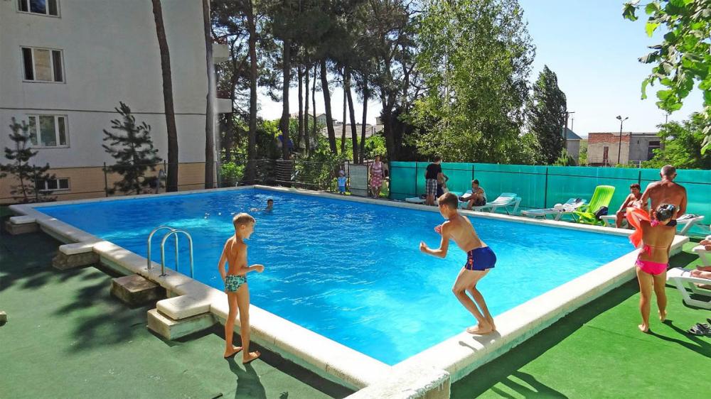 Пансионат "Черноморский" в курортном поселке Витязево занимает просторную ухоженную территорию с сосновыми деревьями и уютными зелеными уголками. На территории пансионата расположены 4-этажные современные корпуса, детская площадка, салон красоты и бесплатная охраняемая парковка