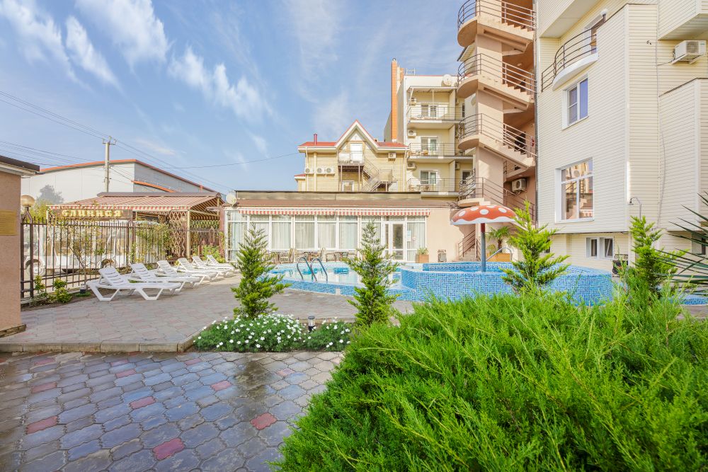 Отель “Золотое руно” расположен в курортном поселке Витязево, в непосредственной близости от морского берега. Мягкий климат