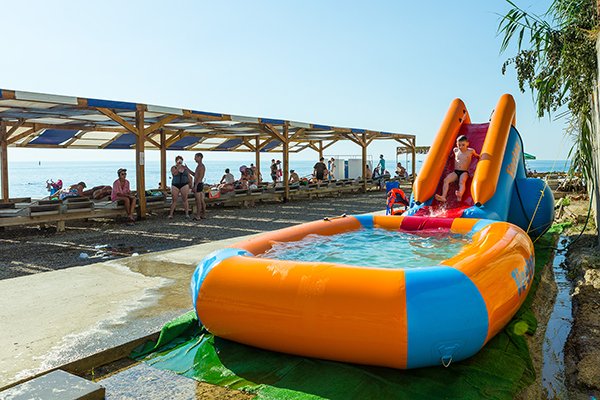 - пользование пляжем и комплексом открытых бассейнов с морской водой, оборудованных лежаками и зонтиками