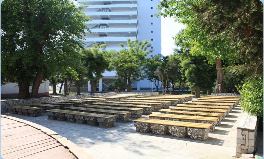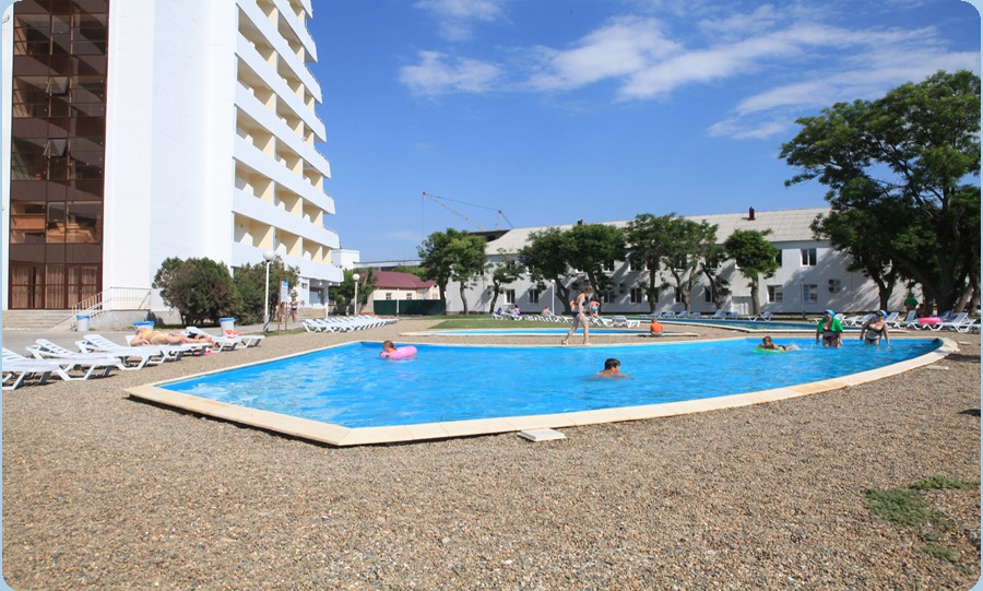 - пользование пляжем и комплексом открытых бассейнов с морской водой, оборудованных лежаками и зонтиками