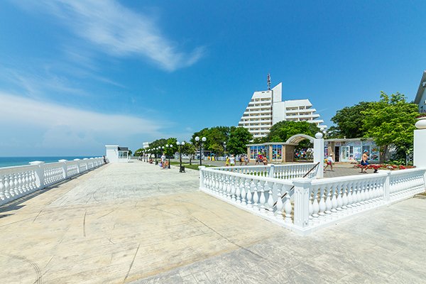 "Малая Бухта" - многопрофильный санаторий круглогодичного действия, рассчитанный на одновременный прием более 900 гостей. На его территории: 3, 5 га вековых деревьев, зеленых газонов, ярких цветников, комплекс открытых бассейнов, детские и спортивные площадки, уютные кафе, летняя эстрада, фонтаны. В архитектурный комплекс здравницы входят: здание клуба-столовой, медицинские корпуса, спальных корпуса и автостоянка