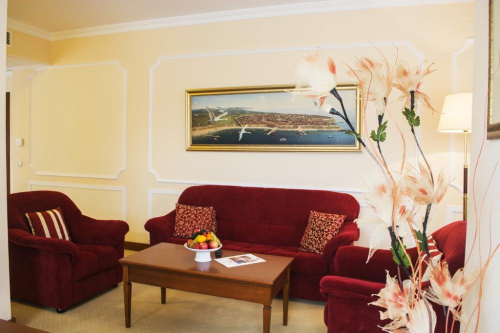 Гранд отель "Валентина" находится в самом сердце города-курорта, утопающего в буйной зелени и красивейших цветниках, на пересечении улиц Терская и Краснодарская - в нескольких шагах от центральной площади, городского парка и центрального пляжа. Из номеров отеля открываются впечатляющие панорамные виды на курортный город и Чёрное море, что сделает отдых ярким и красочным с первых минут Вашего пребывания в одном из лучших отелей Анапы категории 5 звезд.