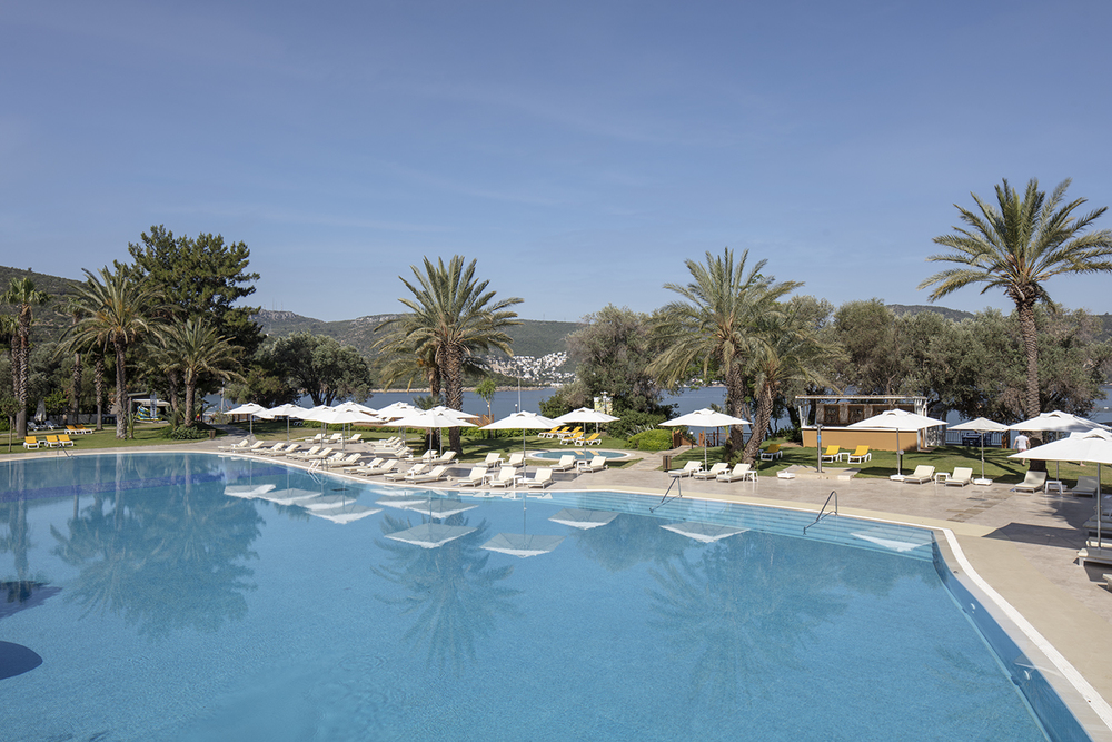 Наш морской курорт располагает частным песчаным пляжем и пышными садами. Исторический замок Бодрума и центр города Бодрум находятся в 20 минутах езды от отеля. Наслаждайтесь нашим спа-салоном, теннисными кортами, водными видами спорта, ежедневными мероприятиями для детей, а также множеством ресторанов и баров