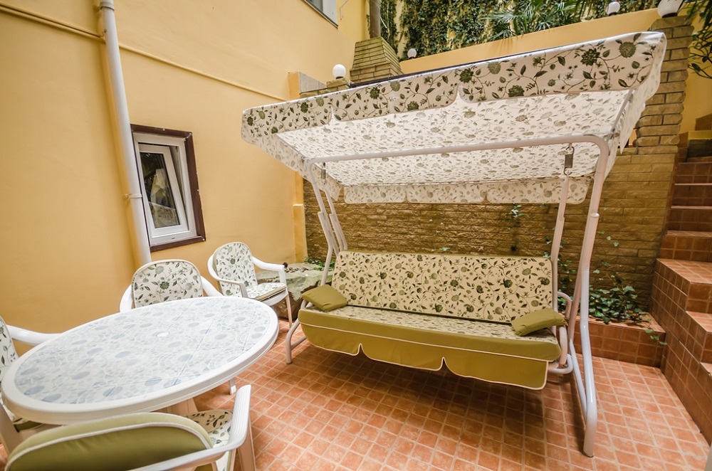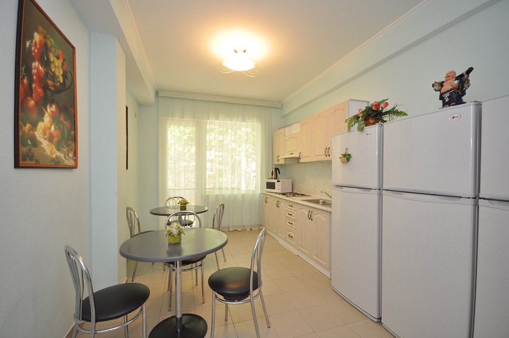 действует пропускная система. На территории отеля есть просторные кухни, терраса с композициями из живых цветов, внутренний зеленый дворик с мангалом, комната со стиральной машинкой, утюгом и гладильной доской