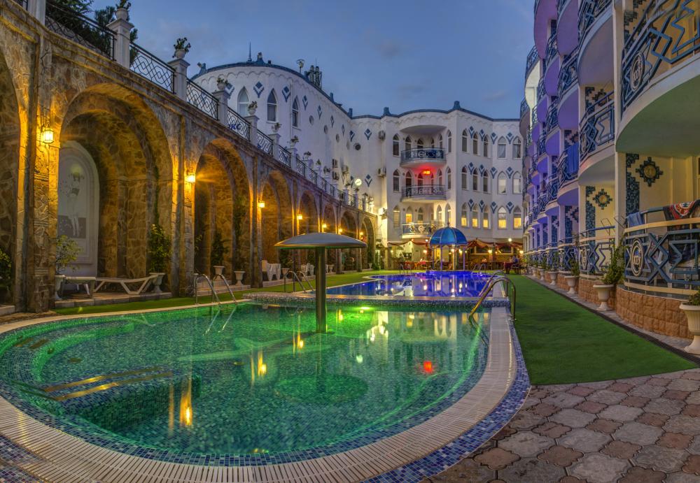 Отель "1001 ночь" расположен в центре курортного п. Мисхор, рядом со знаменитым Мисхорским парком - заповедно-парковой зоной, протяженность которой составляет 3 км вдоль берега моря. Архитектура отеля выполнена в изысканном восточном стиле. Отель имеет 58 комфортабельных номеров различных категорий. К услугам гостей отеля мини-SPA-комплекс (русская, финская, турецкая бани) тренажерный зал, открытый бассейн с баром, детская и взрослая анимация, кофейня в восточном стиле. Отель идеально подходит для семейного отдыха и активных туристов, планирующих насыщенный отдых с экскурсиями на Южном берегу Крыма