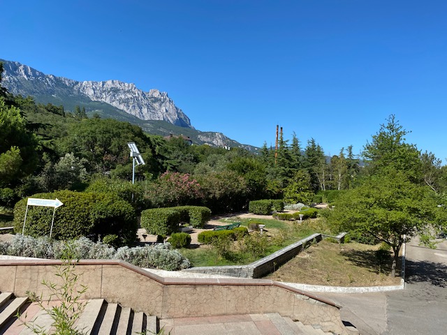 растительности. С одной стороны санатория открывается вид на гору Ай-Петри, с другой стороны - на море. Удобное расположение, лечебная база, мягкий морской климат