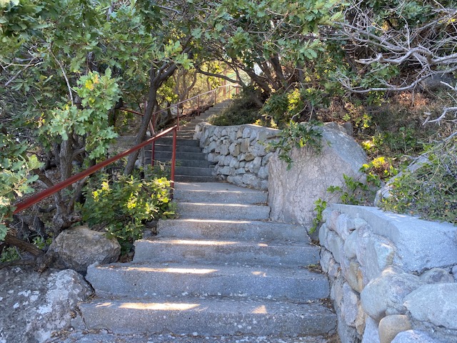 юго-западной части города Алупка, в окружении вечнозеленой