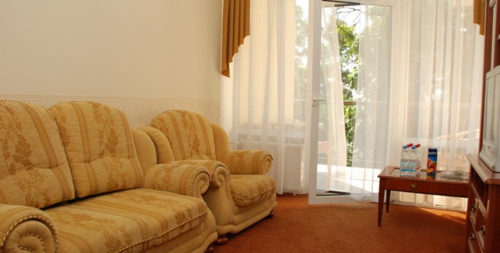 - пользование: бассейном с сауной (работает в межсезонье с 01.10 по 01.06), оборудованным мелкогалечным пляжем, закрытой парковой территорией