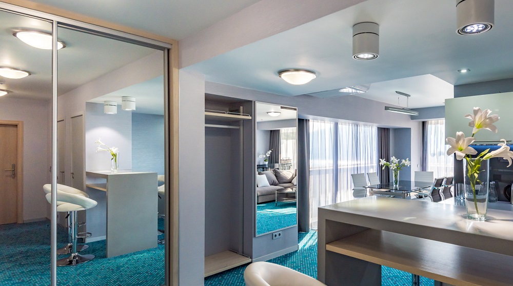 - вместительный гардероб и большие зеркала