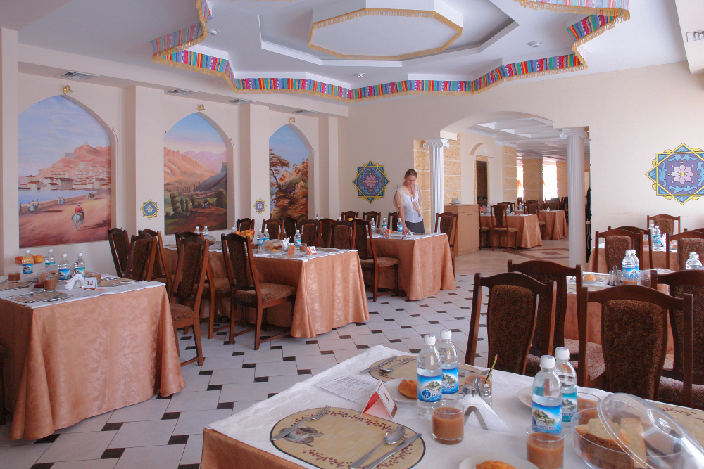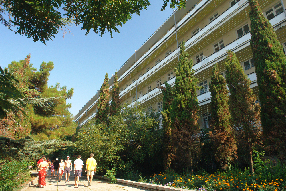памятников истории Крыма. К услугам гостей целый спектр развлечений и полезных занятий: бассейны, тренажерный зал, теннисный корт, бильярд и спа-процедуры. Завтраки, обеды и ужины подаются в ресторанах (в зависимости от корпуса, в котором проживают отдыхающие) и кафе. На 1 и 2 этаже административного здания расположен медицинский центр. Инфраструктура комплекса позволяет проводить