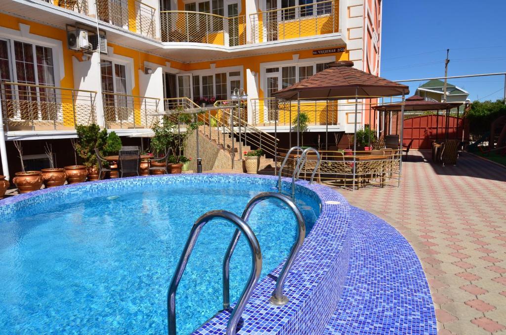 Коттедж "Согдиана" расположен в Николаевке, на Западном берегу Крыма, который славится своими просторными песчаными пляжами, свежим воздухом и чистой морской водой. Отель удачно сочетает комфортное проживание с умеренными ценами, а также удачным расположением относительно моря и центра поселка. Здесь созданы лучшие условия для отдыха с детьми: оборудована детская площадка с горками и качелями, комната с игрушками, настольными играми, в кафе отеля можно заказать детское меню