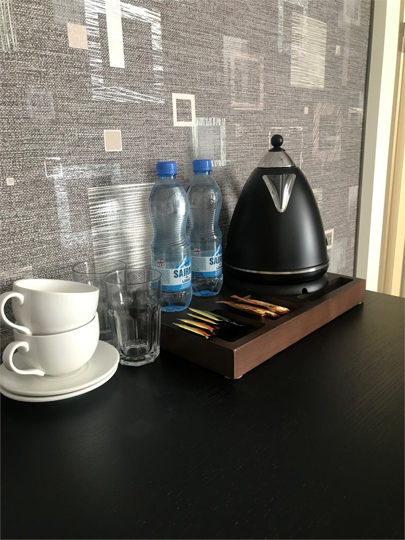 - чайная станция: черный и зеленый чай, кофе, сливки, сахар, печенье