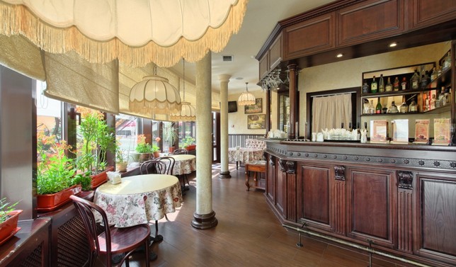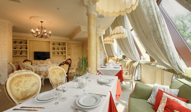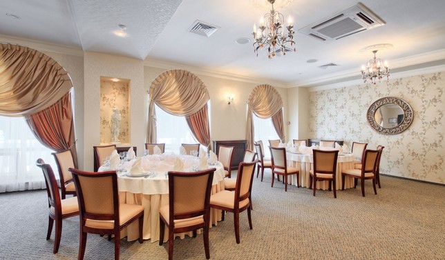 Пансионат представляет собой 4-этажное здание оригинальной архитектуры, построенное в стиле летних курортных резиденций конца XIX века. Пансионат располагает прекрасными возможностями для проведения семинаров, тренингов, деловых переговоров и других мероприятий подобного рода, так как здесь оборудован конференц-зал до 100 мест, оснащенный необходимыми техническими средствами.
