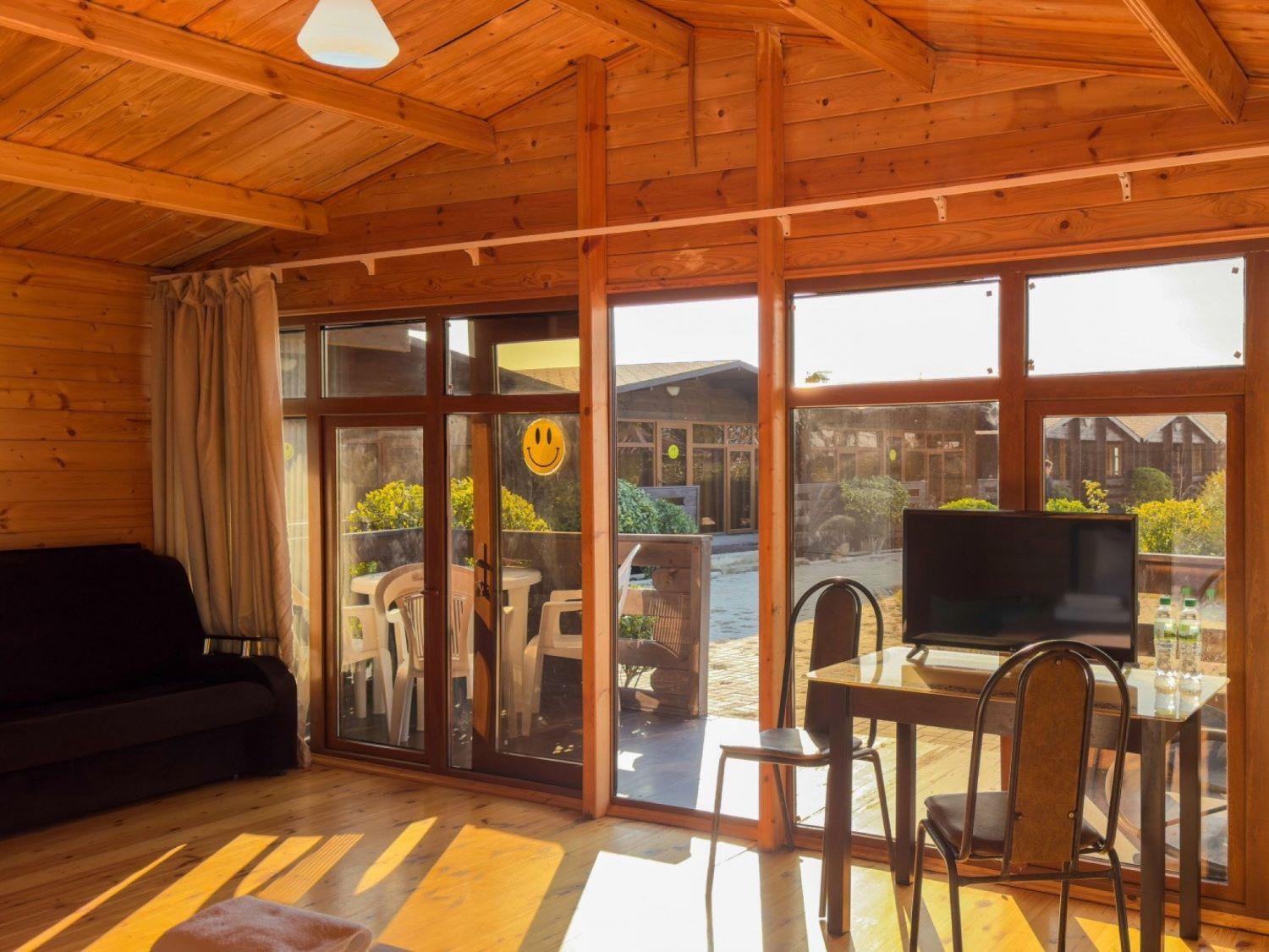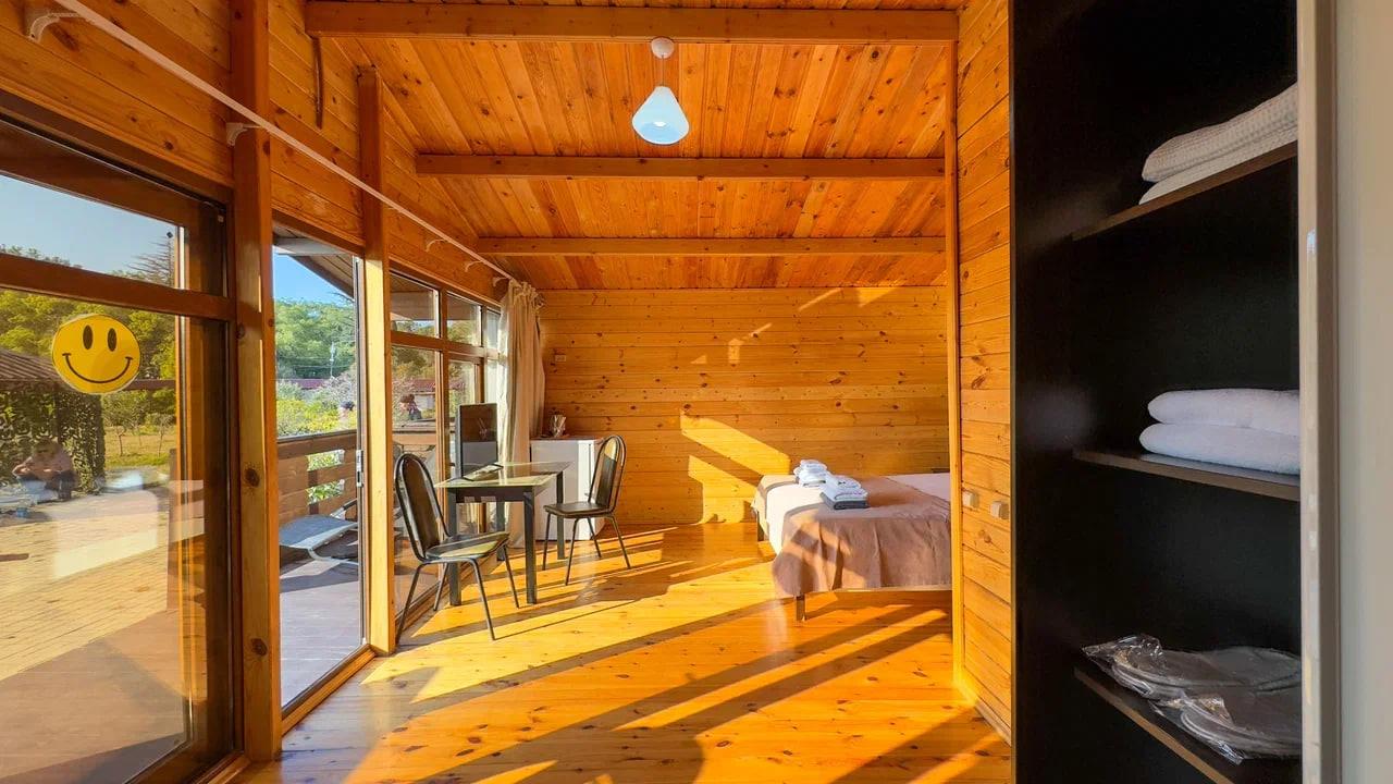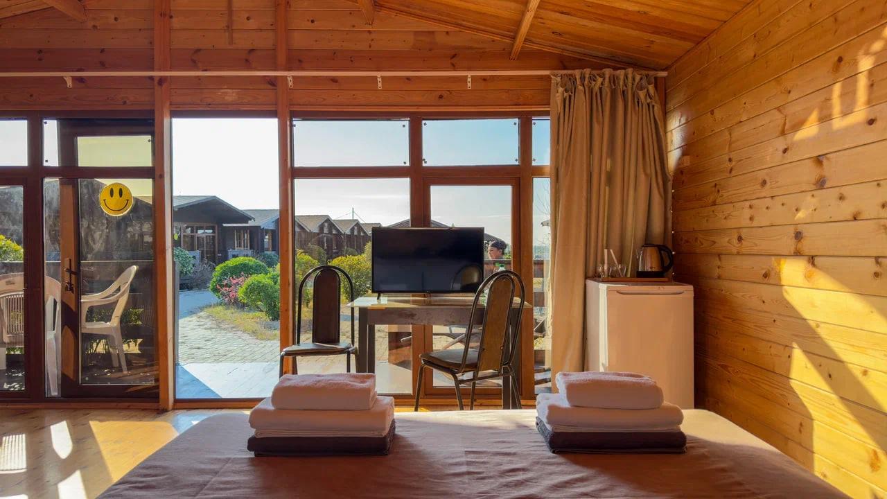 GUDWIN GLAMP HOTEL - эко-отель на первой линии в районе новой Гагры и прекрасное место для того, чтобы провести расслабляющий пляжный отпуск, семейные каникулы или познавательный тур по Абхазии. Отель прекрасно подойдет для отдыха с детьми, ведь для них предусмотрены настольные игры, книги и бассейны. Номерной фонд выполнен из чистого дерева, интерьеры - в спокойных природных оттенках. К услугам гостей 4 каркасных бассейна, оборудованный пляж с лежаками и зонтами, кафе, меблированные беседки для отдыха и посиделок. В шаговой доступности от отеля: набережная, аквапарк, остановки общественного транспорта и центр города