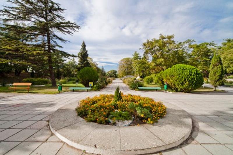 площадью около 15 га с ухоженными цветниками, большим розарием,
