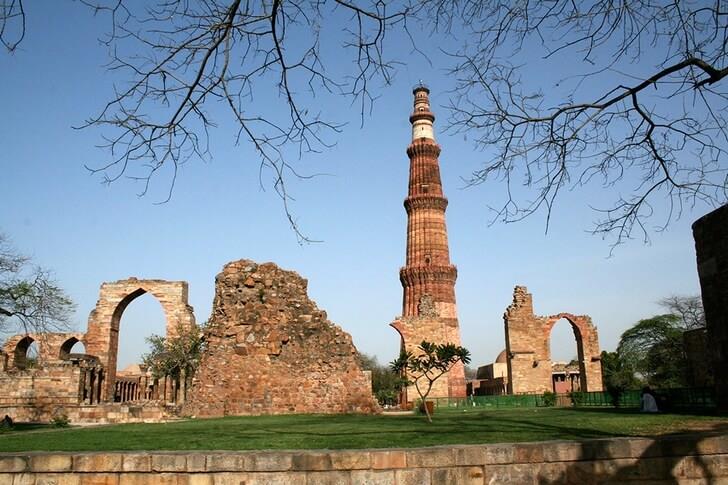 • Достопримечательности Нью-Дели: Кутаб-Минар - минарет Имеет диаметр 14,32 м у основания и около 2,75 м сверху, с высотой 72.5 м. Кутбуд-Дин Айбак заложил фундамент Минара в 1199 г. н.э. для использования муацзина (crier), чтобы призывать к молитве и поднял первый этаж, к которому были добавлены еще три этажа его преемником шурином, Шамсу'д-Дин Илтутмиш.
