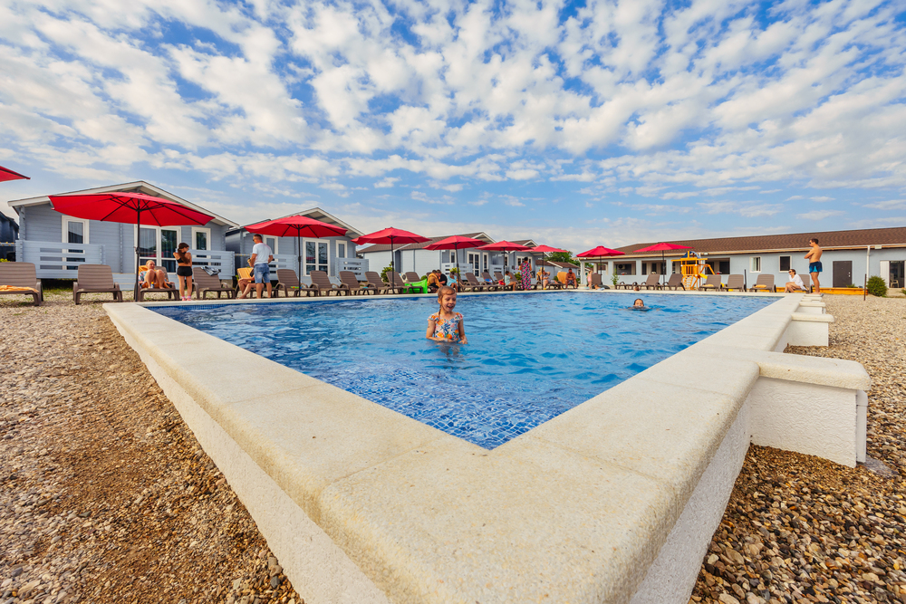 два открытых бассейна, один подогреваемый (7/14) , второй без подогрева с детским отсеком (7/16)