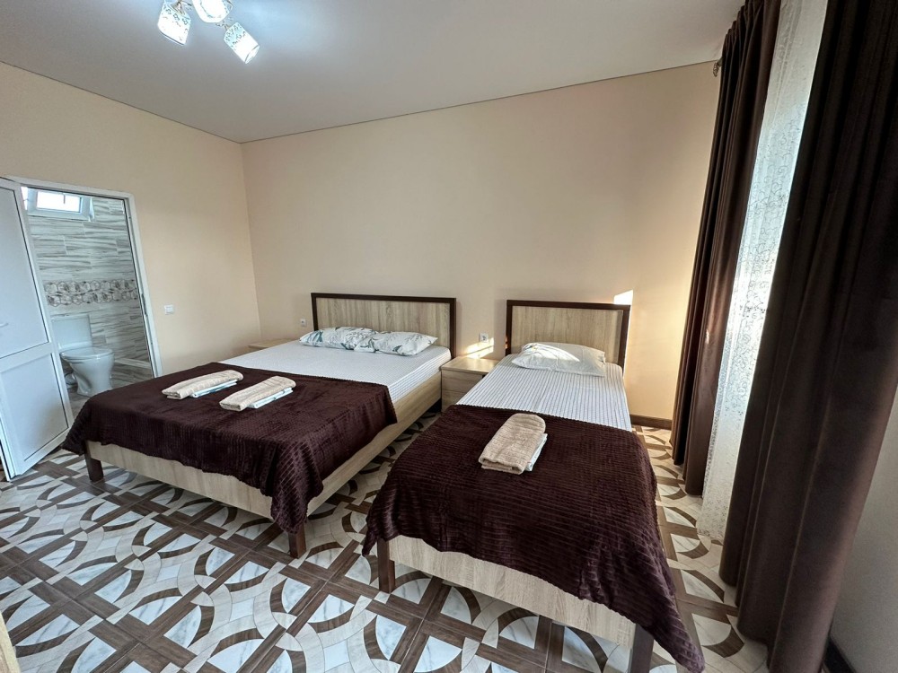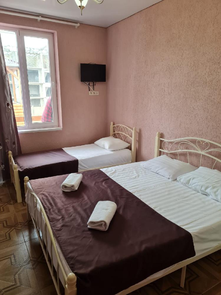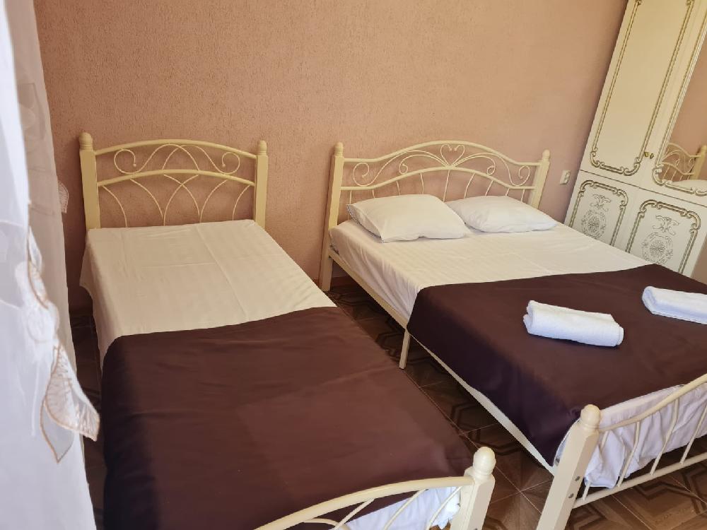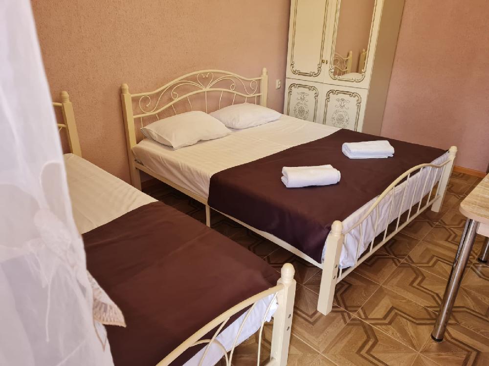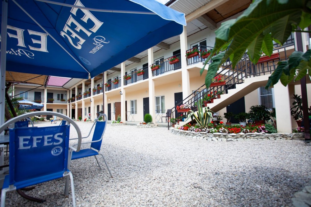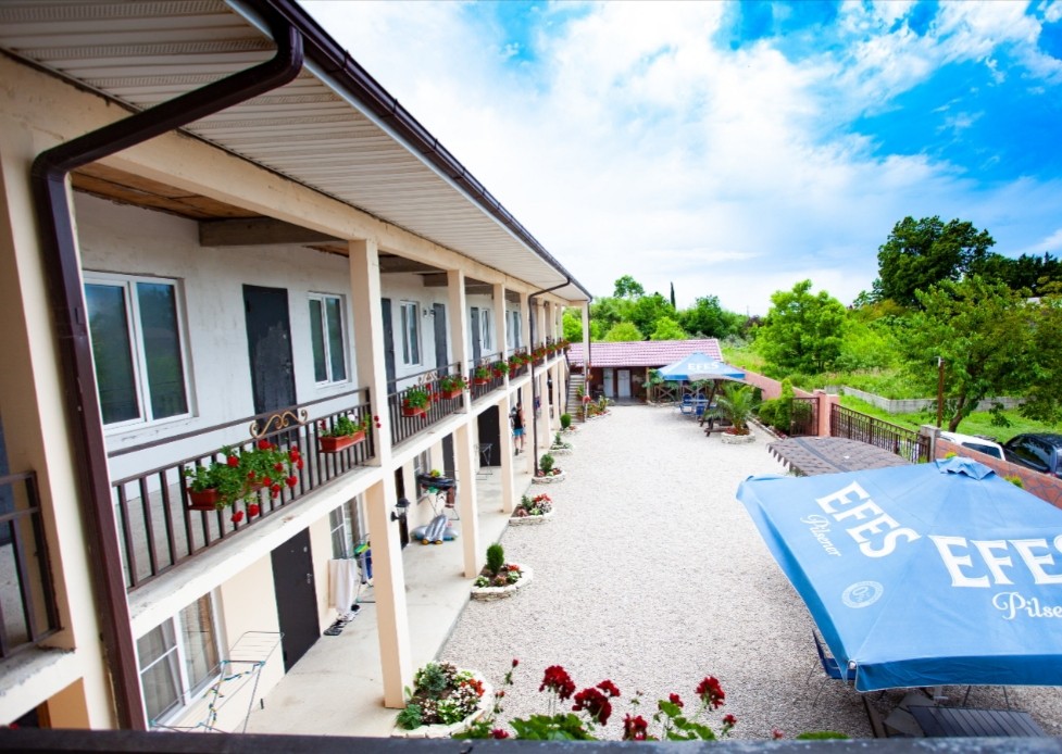 Отель находится в 450 м от пляжа Бархатные сезоны в центре п. Леселидзе и состоит из 4 корпусов. Каждый корпус - отдельно стоящее двухэтажное здание с 3-местными и 4-местными номерами стандарт с удобствами, располагаются на одной улице, недалеко друг от друга. Окончательное распределение номеров производится на момент заселения и возможно в любом корпусе. На территории каждого корпуса есть кухня под навесом для приготовления пищи. Недалеко от отеля находятся столовая, магазины, кафе
