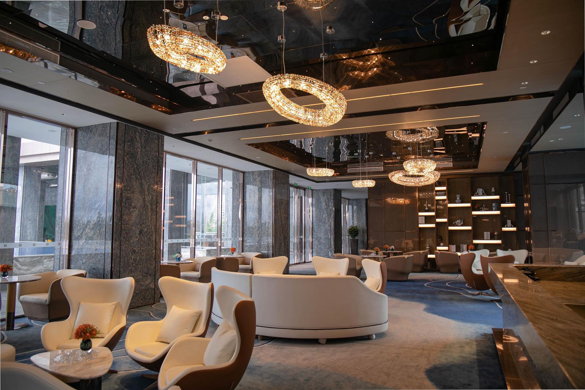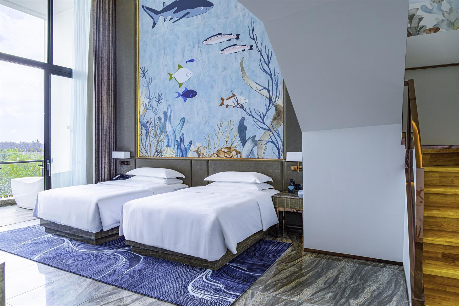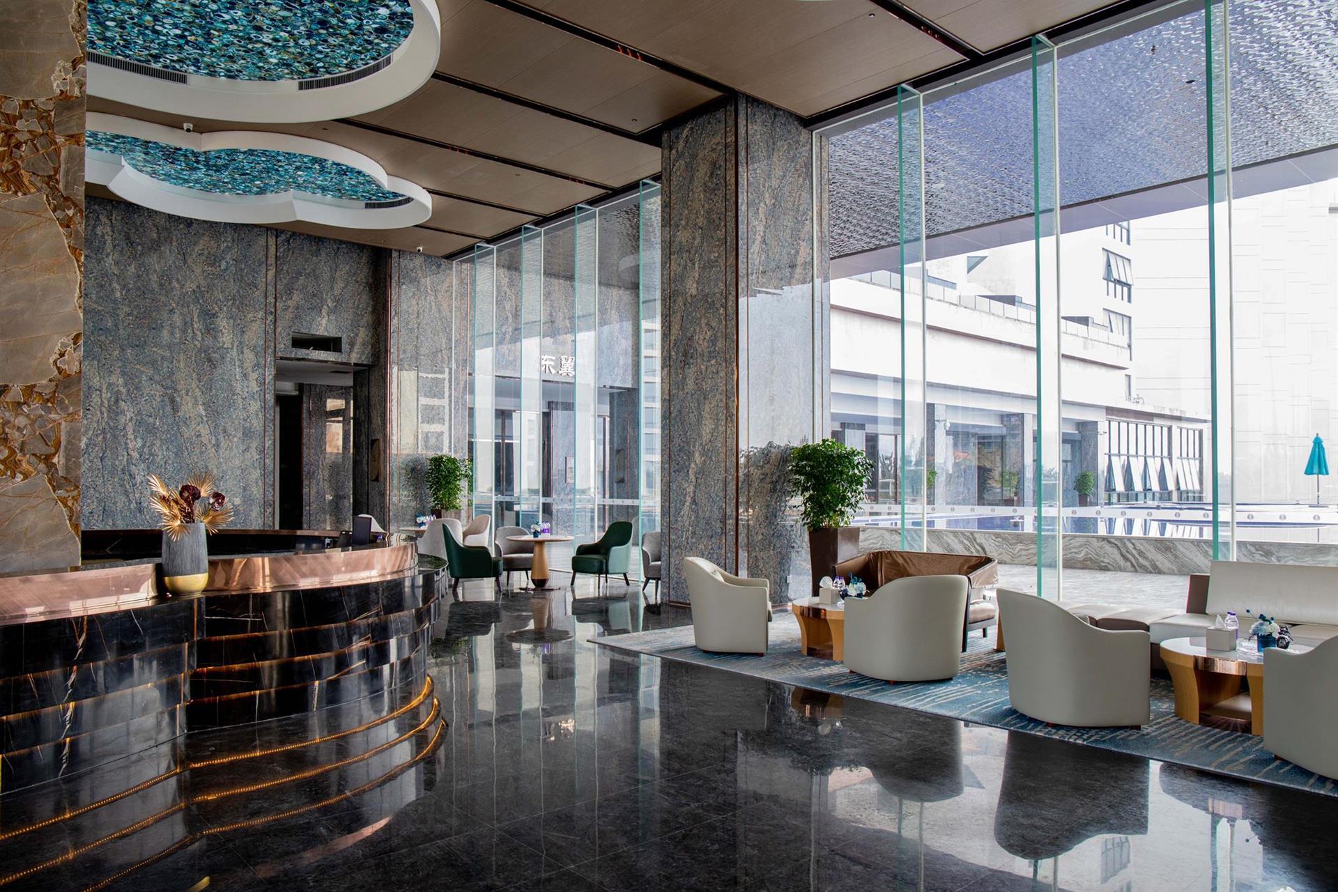Отель оформленный в морской тематике находится у залива Циншуй, где побережье протяженностью 12 км известно не только своей красотой и белоснежным песком - это один из трех «поющих пляжей» в мире.