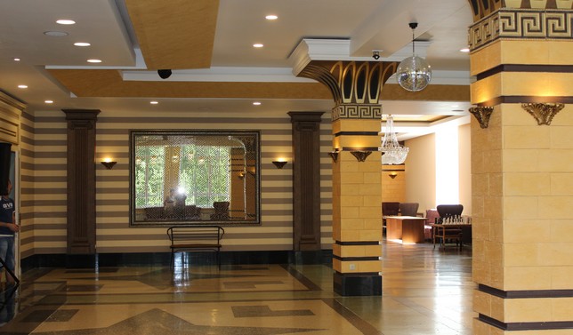 Корпус №1 (основной, 5-ти этажный): администрация, номерной фонд, поликлиника, Spa-центр, фитобар, бассейн, спортивный и тренажелный залы, два зала столовой, бар, магазин, библиотека, почтовое отделение.