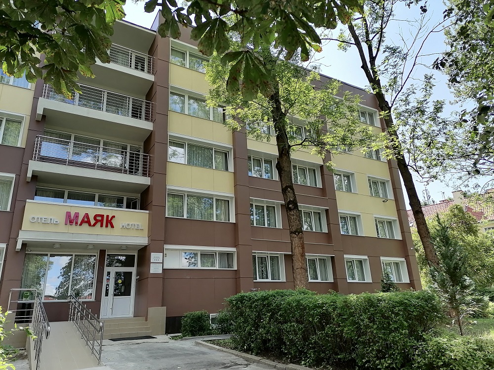 Гостиница "Маяк" расположена в тихом зеленом районе, неподалеку от центра города. На всей территории гостиницы и в номерах есть бесплатный Wi-Fi, на 1 этаже работает кафе, где возможен заказ завтраков, обедов и ужинов. В пределах 5 минут ходьбы от гостиницы находятся различные магазины, кафе и рестораны, рынок, ТЦ с кинотеатром, Дворец спорта Янтарный, Балтийский военно-морской институт им. Ушакова. Также в паре минут ходьбы - станция электропоездов до морских городов области - Светлогорска и Пионерска
