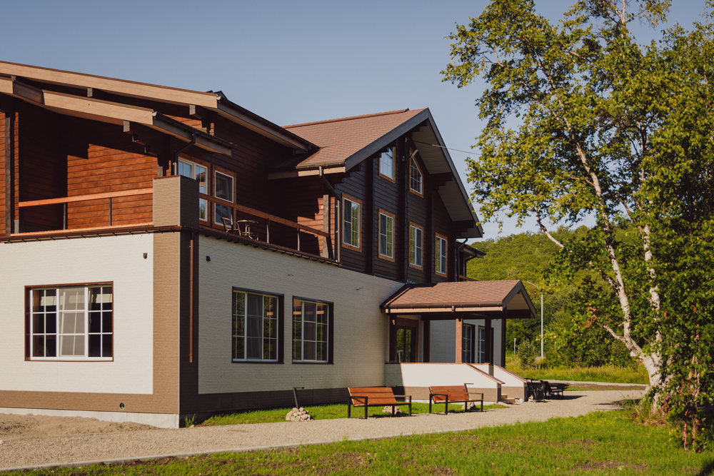 Вокруг шале облагороженная территория с качелями и детской площадкой. В ресторане подают авторские блюда камчатской кухни, меню которой основано на местных деликатесах: рыба, икра, мясо краба. В баре - спешелти-кофе, травяной чай и коктейли с местными ягодами