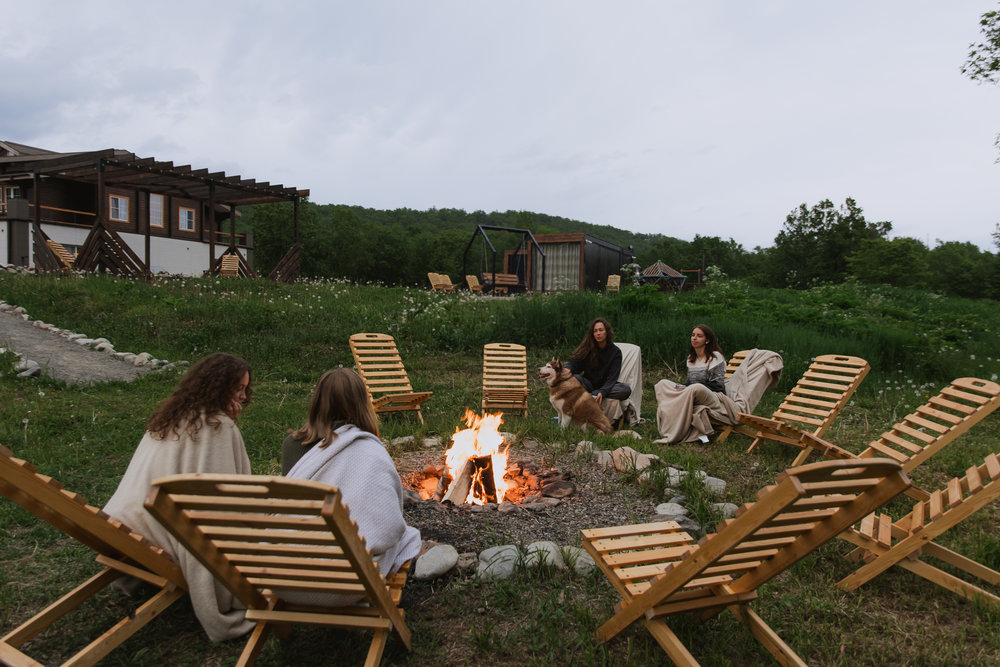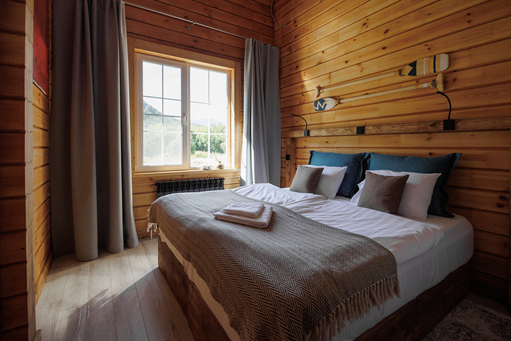 стильные арт-объекты. Здесь по-домашнему уютно: и в номерах и 4 отдельных домиках с террасой в стиле барн‑хаус. Из окон и с террас открывается вид на лес и сопки.