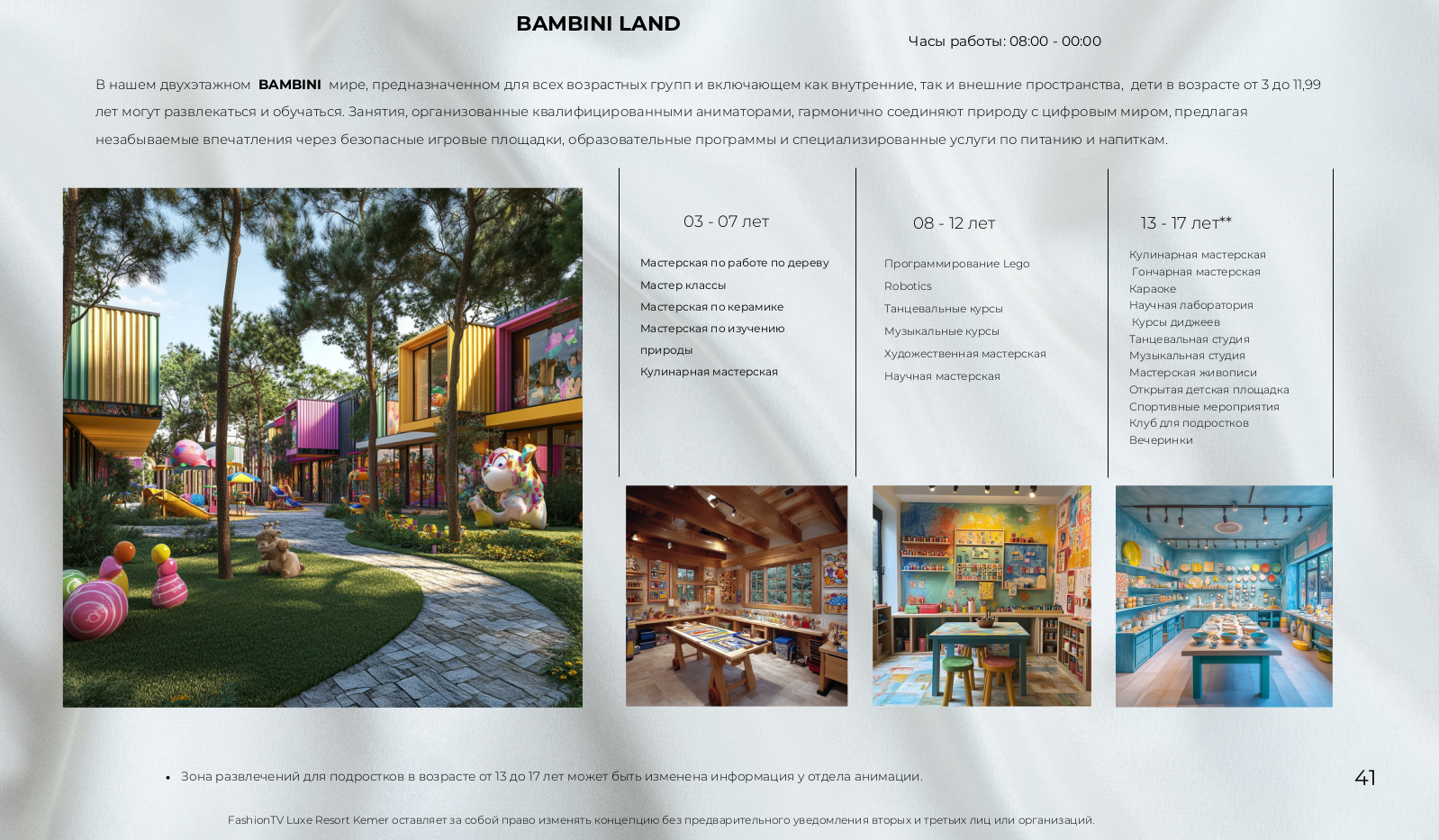 - Детский клуб: Bambini Land