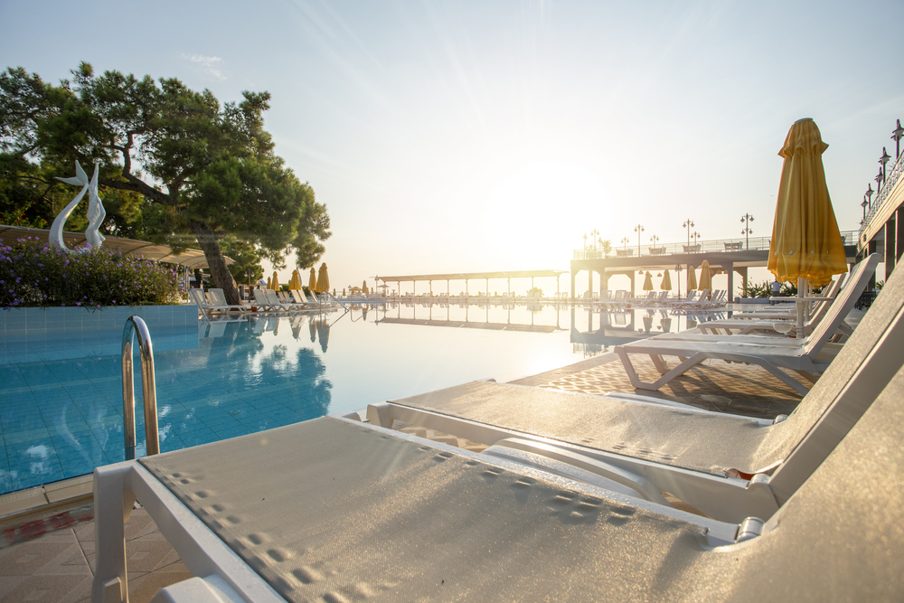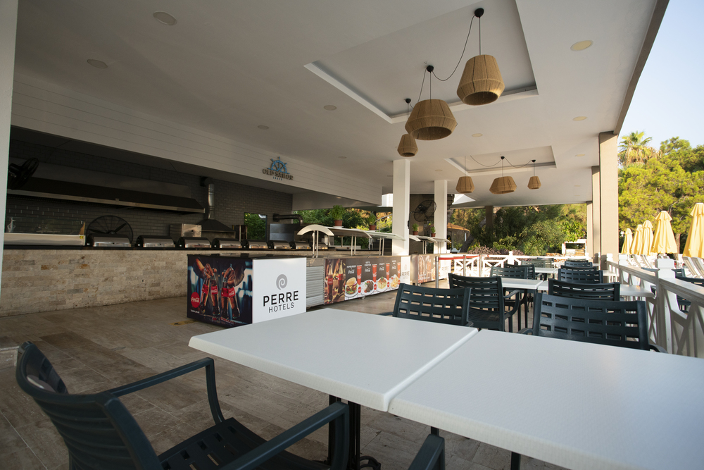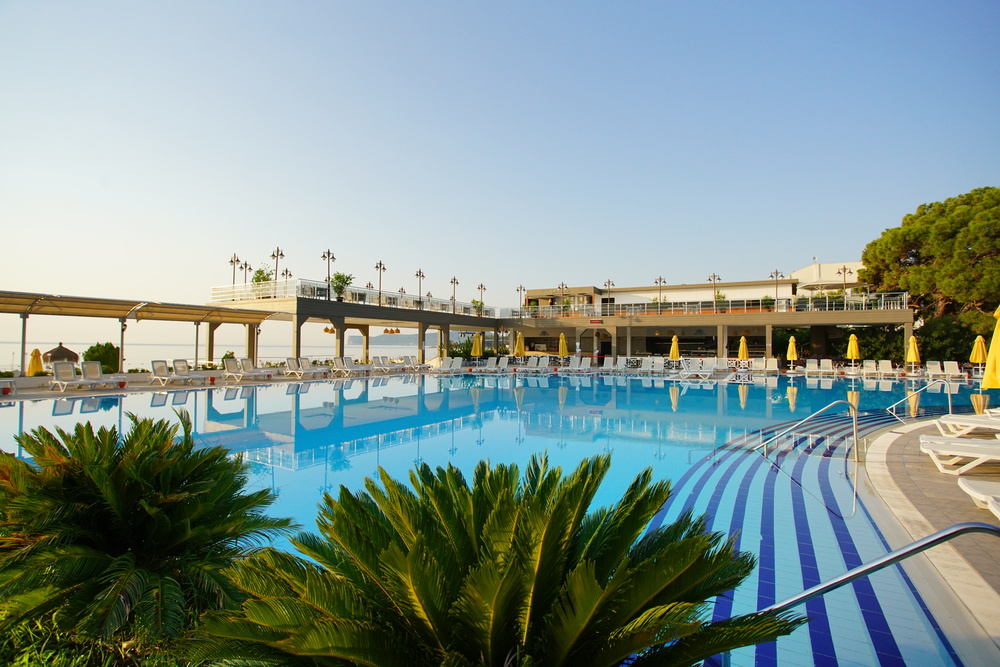 Отель расположен на берегу моря, на территории площадью 34000 кв.м, среди апельсиновых садов и хвойных лесов