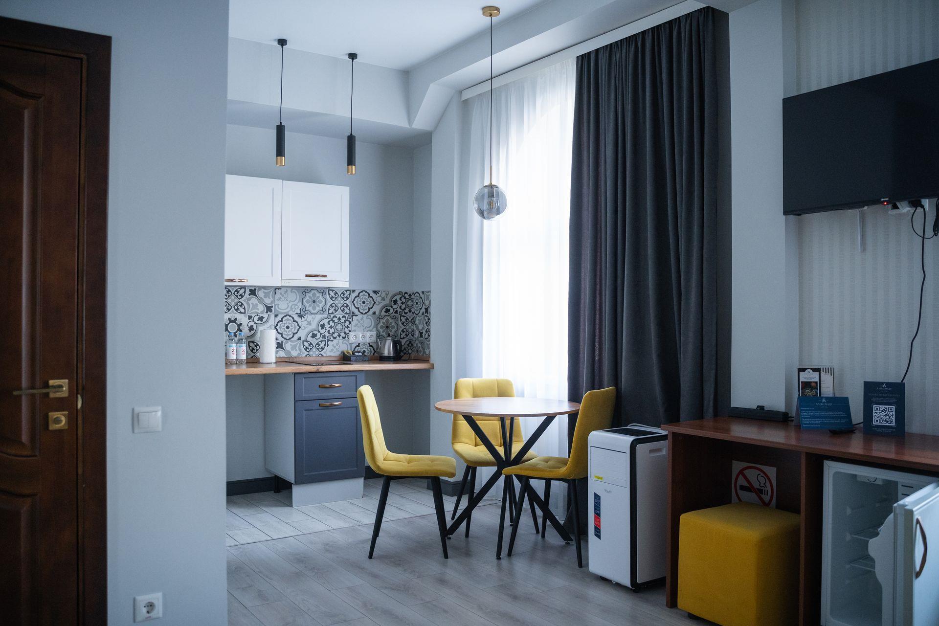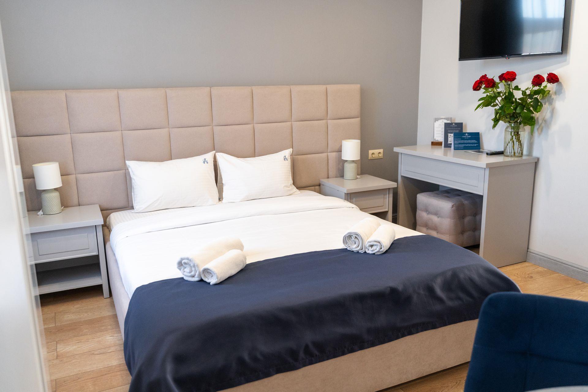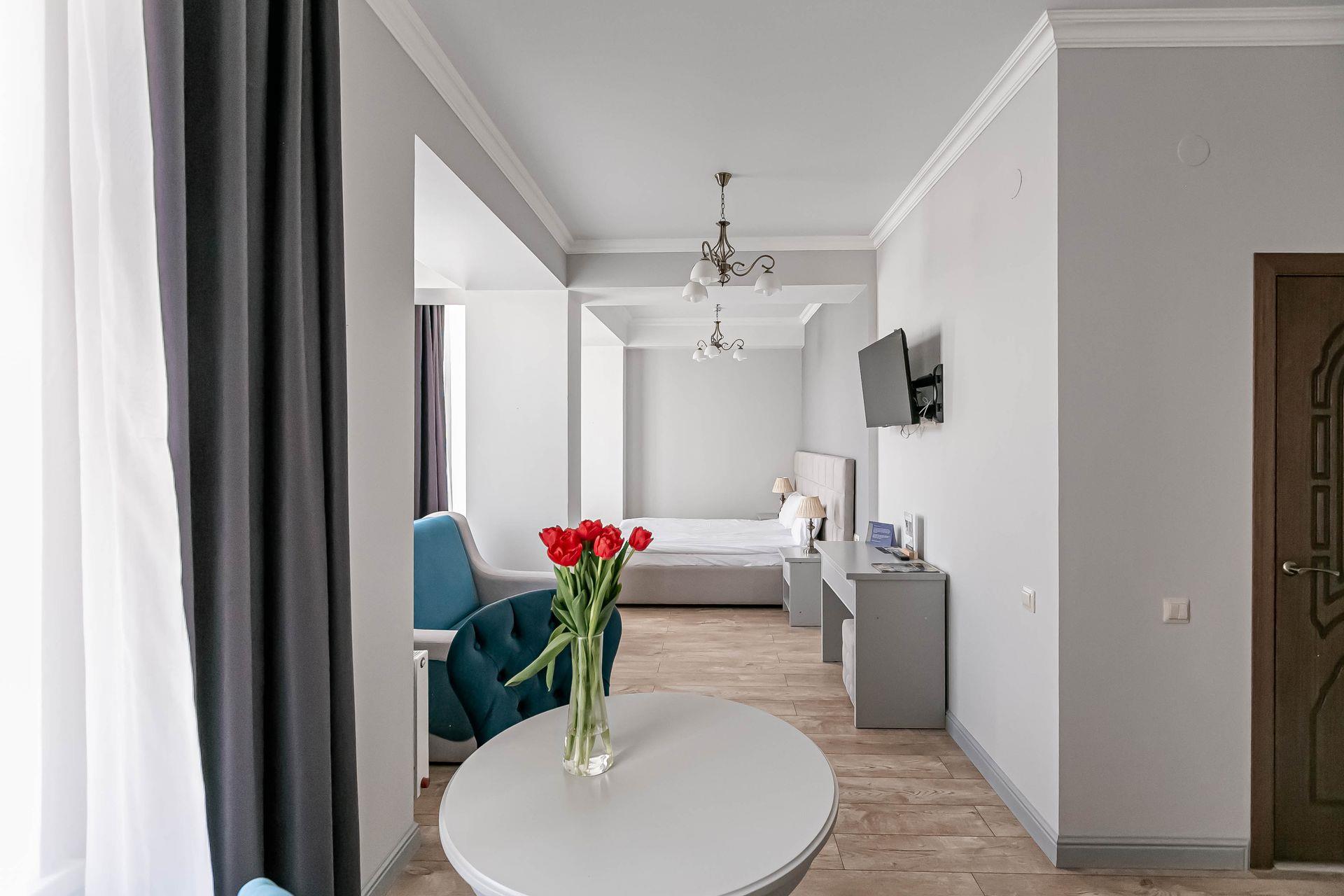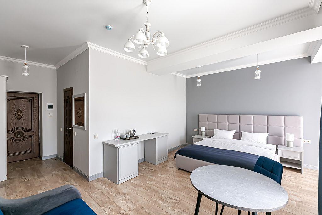 "Александр" - уютный отель в самом сердце живописного Кисловодска, всего в двух минутах пешком от знаменитой нарзанной галереи и Колоннады, которая служит главным входом в Национальный Кисловодский парк. Комфортом, оснащением и безупречным сервисом отель идеально подходит как для отдыха с семьей, так и для деловых поездок. В отеле к вашим услугам 94 комфортабельных номера, оформленных в теплых тонах, которые создают атмосферу уюта и спокойствия. Благодаря собственному ресторану гости могут наслаждаться разнообразием местной и международной кухни, а в лобби-баре с уютной атмосферой приятно провести время за чашкой ароматного кофе или бокалом вина. Отель также предлагает услуги косметического и массажного кабинета и собственную парковку