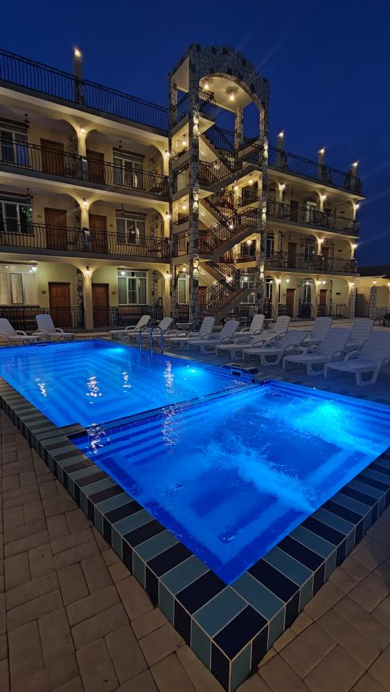 Новый отель Сasa Del Sol выполнен в загородном мексиканском стиле и каждый его номер оформлен уникально. Без сомнения, один из самых ярких и запоминающихся отелей курорта, где большое внимание уделено комфорту наших Гостей. У каждого номера отеля индивидуальный вход, подъем на этажи осуществляется по лестнице. Отель находится в центре города Новый Афон, в пешей доступности пляж (500 м) и достопримечательности: Новоафонская пещера, Ново-Афонский Симоно-Кананитский монастырь, Грот и храм апостола Симона Канонита, Иверская гора, водопад, Приморский парк. ​На территории отеля расположился бассейн с чашей джакузи, вокруг которого оборудована зона отдыха с лежаками и зонтиками, где можно укрыться от яркого летнего солнца