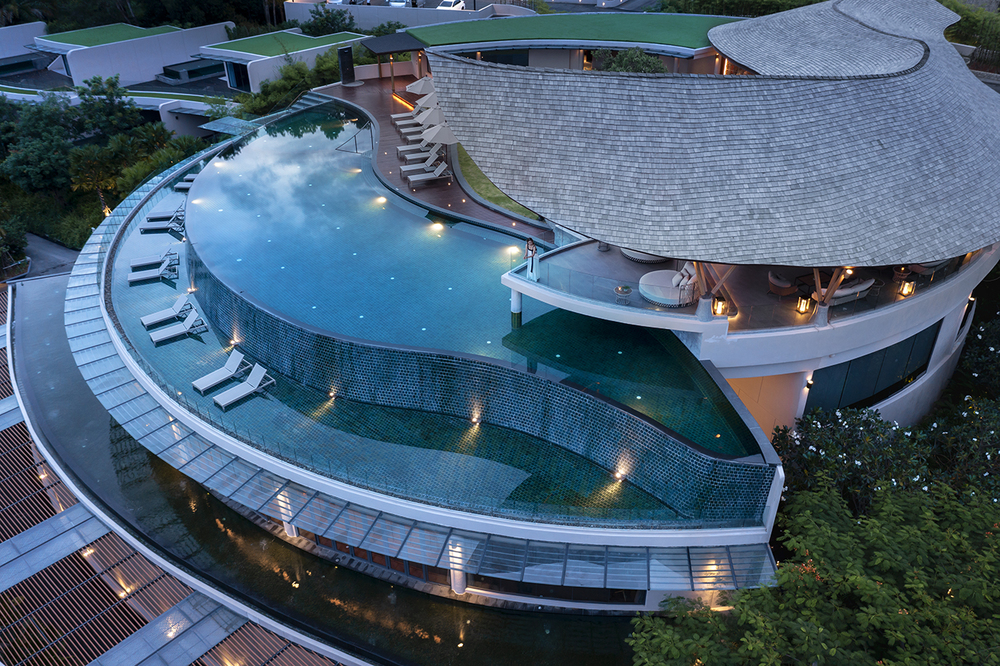 Отель Noku Phuket расположен на склоне холма с потрясающим видом на залив Чалонг. Архитектурный дизайн включает открытые пространства, которые гармонично сочетаются с зеленью и окружающей природой.