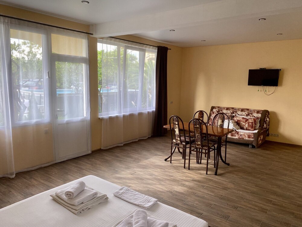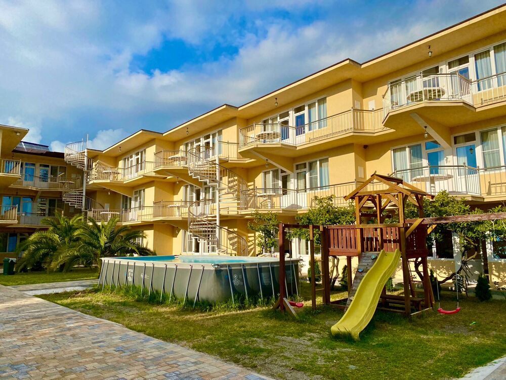 Гостиница "Дива" расположена в нескольких минутах ходьбы от пляжа. У отеля закрытая, охраняемая территория. На территории: каркасный бассейн, парковка, озелененная зона для пикника, мангальная зона, детская площадка. Рядом с гостиницей находится множество столовых, кафе и небольших магазинов с курортными товарами и продуктами