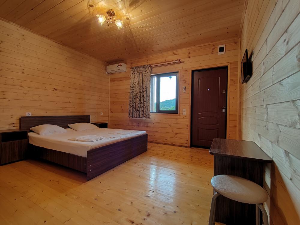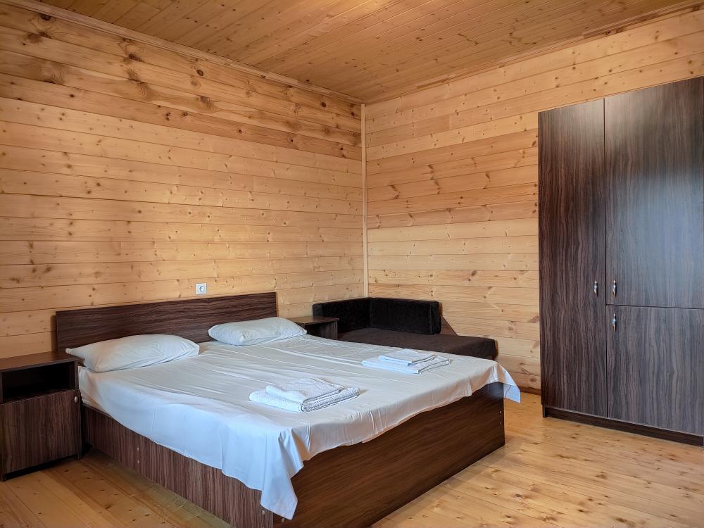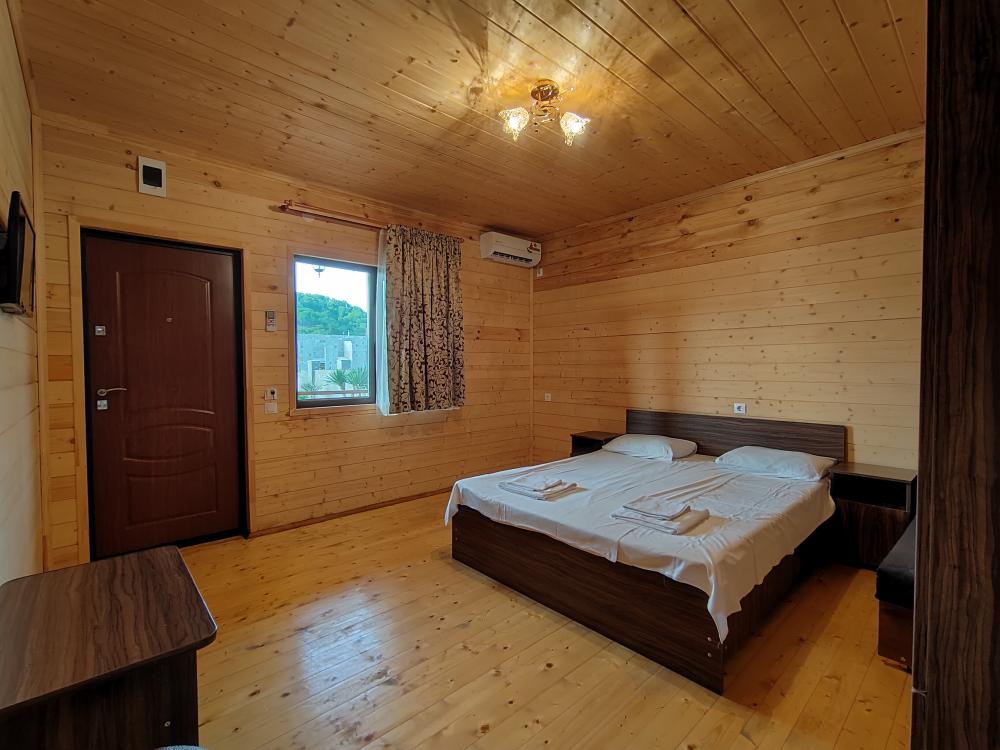 Эко-отель "Карат" на курорте Лдзаа идеально подойдет для семейного, бюджетного, экологичного и пляжного отдыха на берегу моря.Н а территории отеля: 2-этажный корпус из дерева, вместительный двор и зеленая лужайка. Оборудована летняя кухня, мангальная зона, детская площадка. В общественных зонах действует Wi-Fi