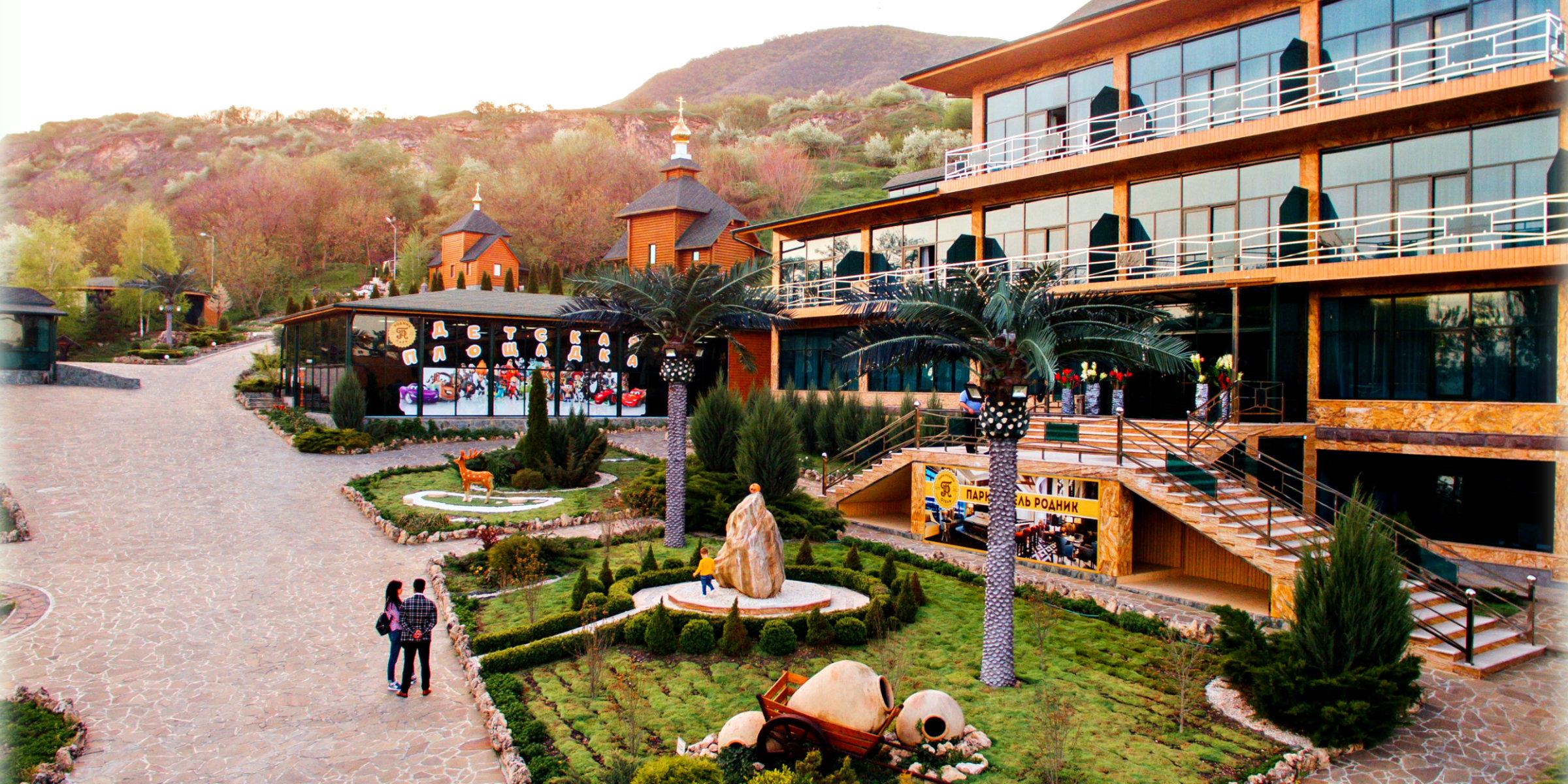 "Парк РОДНИК" — настоящая достопримечательность КМВ. Парк образовался вокруг бьющего из-под земли родника с кристально чистой водой, отель ценит и бережет его природные свойства.Гости приезжают в отель за чудесной атмосферой и праздником. На территории комплекса можно провести время с семьей и друзьями, а также забронировать номер в 4-звездочной гостинице, наслаждаясь прекрасным видом, свежим воздухом и вкусной едой. Отель предлагает своим гостям европейский сервис в просторных, светлых номерах с изысканными интерьерами