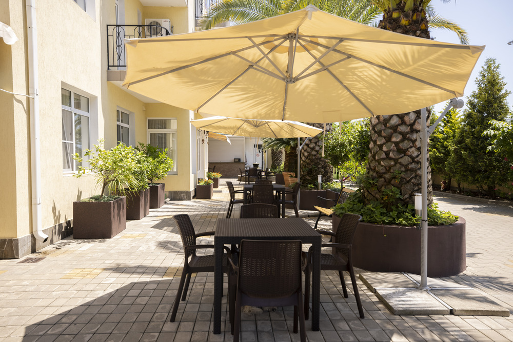 территории отеля возможен, как в тени, так и на солнце. В шаговой