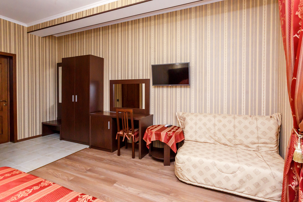 детскими аттракционами. К услугам гостей автостоянка, WI-FI, бассейн, кухня для самостоятельного приготовления пищи, закрытый благоустроенный двор
