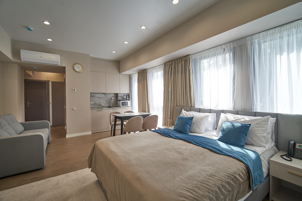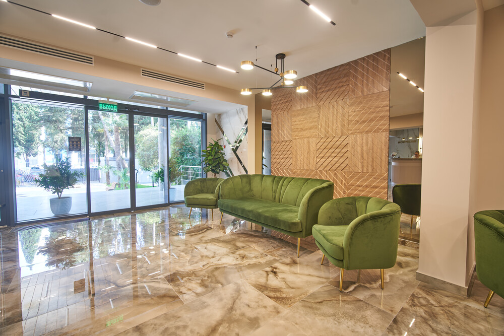 Современный апарт-отель в самом центре Адлера всего в 700 м от моря. Гостиничный комплекс уютно расположился в зелени собственной парковой зоны в окружении гималайских сосен, эвкалиптов и кипарисов. К услугам гостей 100 апартаментов с дизайнерским ремонтом и отделкой из высококачественных премиальных материалов. Закрытая благоустроенная территория с авторским ландшафтным дизайном, детской площадкой и собственным бассейном. Море и парки - в шаговой доступности, близость бизнес и торговых центров, удобная транспортная инфраструктура