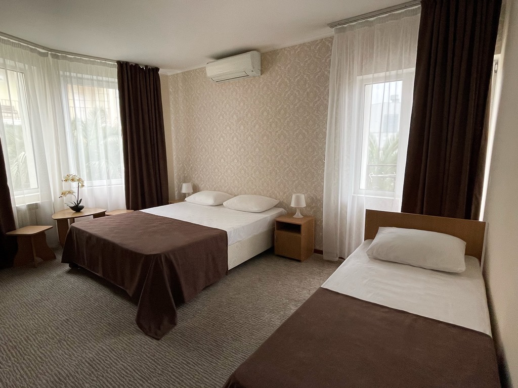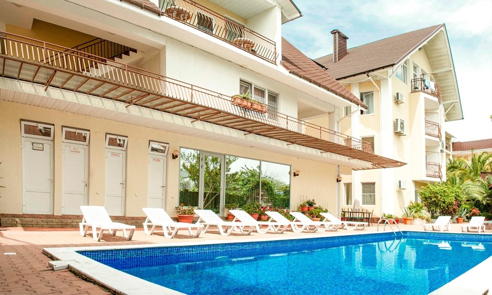 Отель "Вилла Валентина" расположен в 5 минутах от пляжа. Все необходимое есть в шаговой доступности: магазины, столовые, кафе, рестораны, набережная и пляж. В отеле комфортные и удобные номера, подогреваемый бассейн, зеленая и уютная территория с зоной отдыха и детской площадкой. Гостям предлагается завтрак, обед и ужин