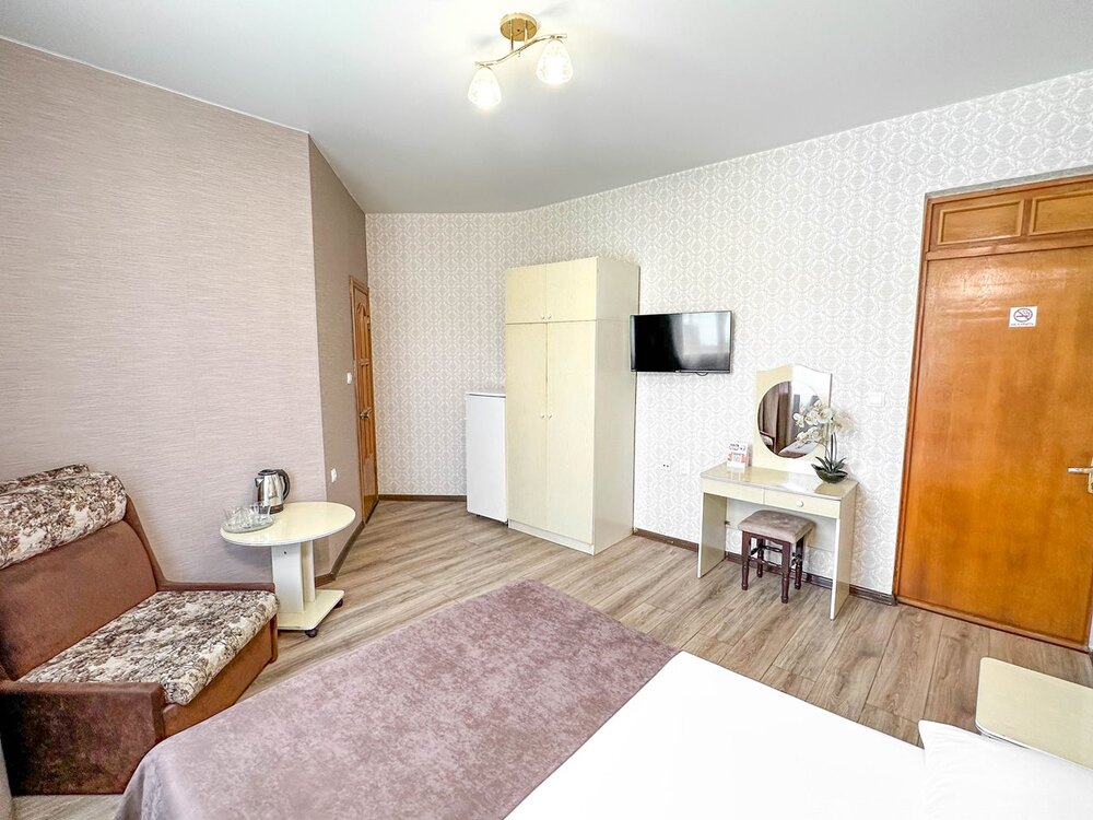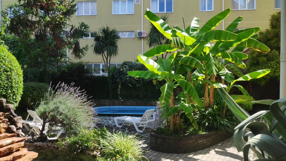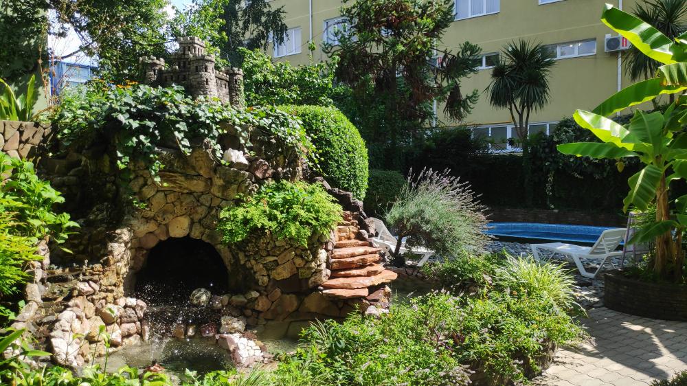 "ВИВА ВИКТОРИЯ" в Адлере имеет небольшую, уютную территорию с водопадом и цветущими растениями. Отель идеально расположен в 5-ти минутах ходьбы от моря, фермерского рынка, кафе, магазинов, автобусной остановки. Все удобства для комфортного отдыха: Wi-Fi, кондиционер, холодильник, утюг, гладильная доска, сушилки для белья предоставляются гостям бесплатно. Для детей в пешей доступности от отеля - детский игровой комплекс с батутами, площадками-лазалками, прокатом самокатов и велосипедов