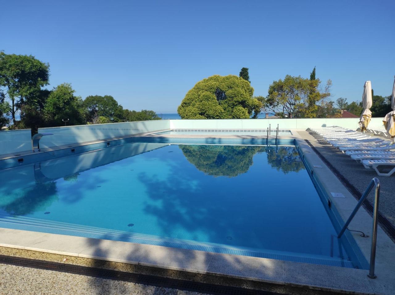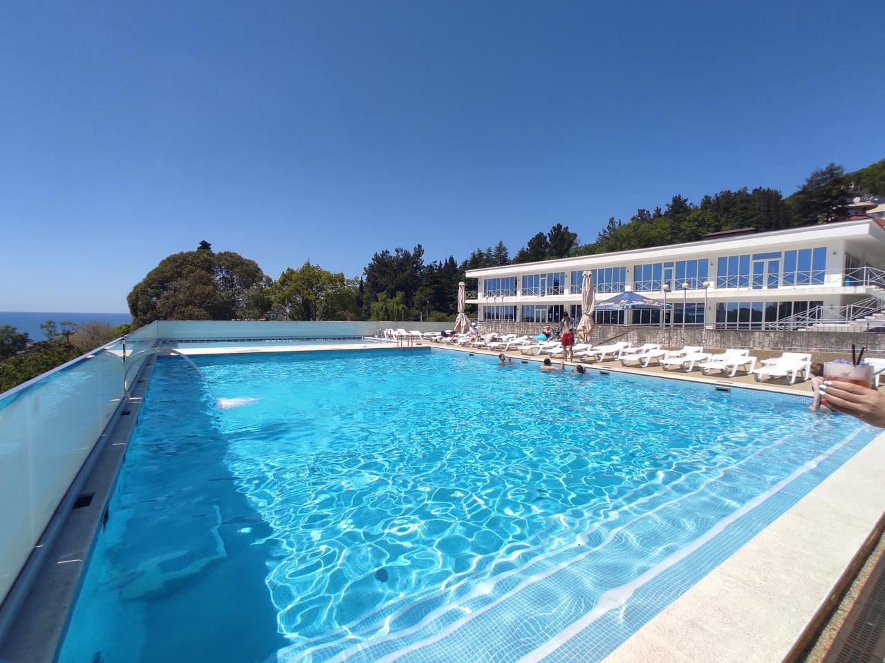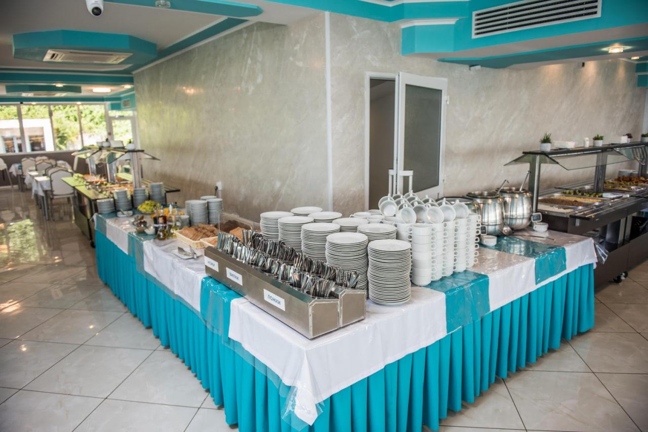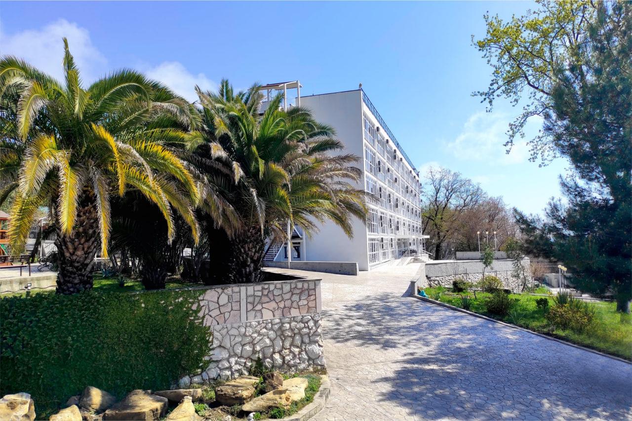 К услугам гостей номерной фонд, ресторан, бар, детская комната, детская площадка, экскурсионные программы, трансфер, охраняемая парковка, Wi-Fi и собственный оборудованный чистый пляж протяженностью 88 м