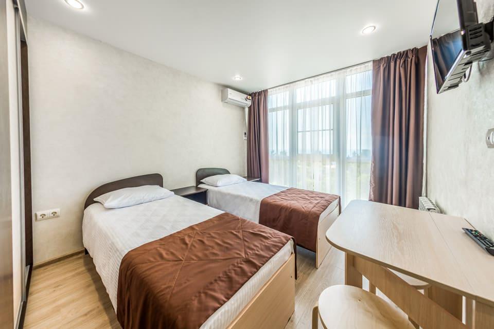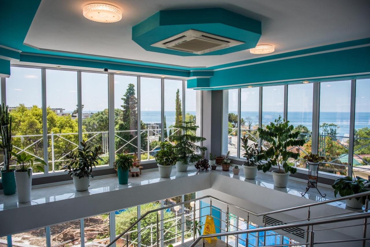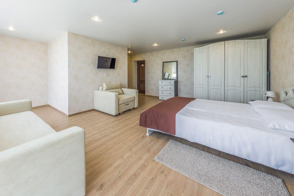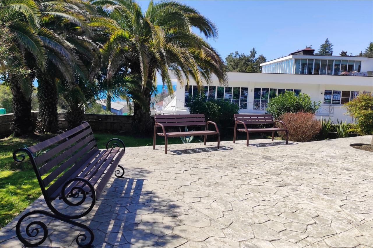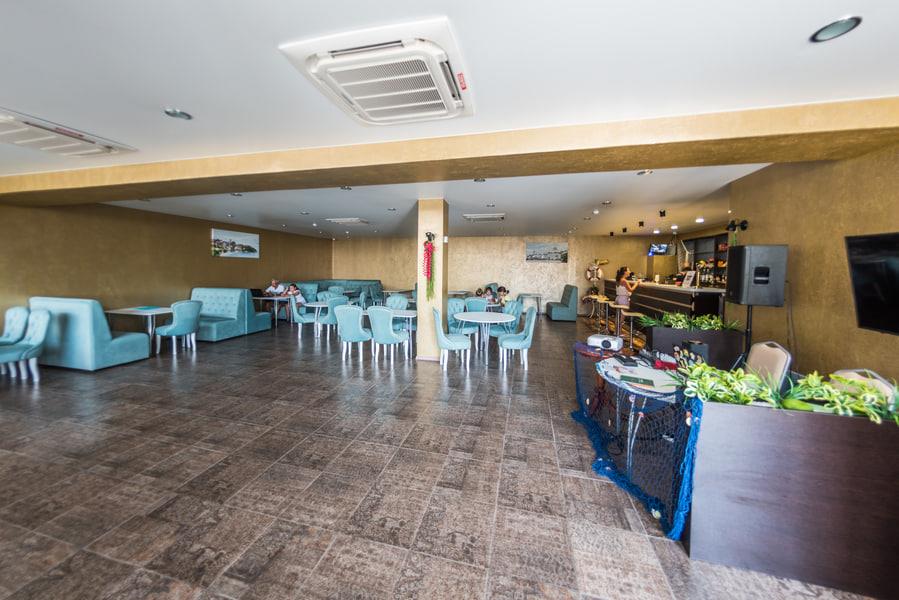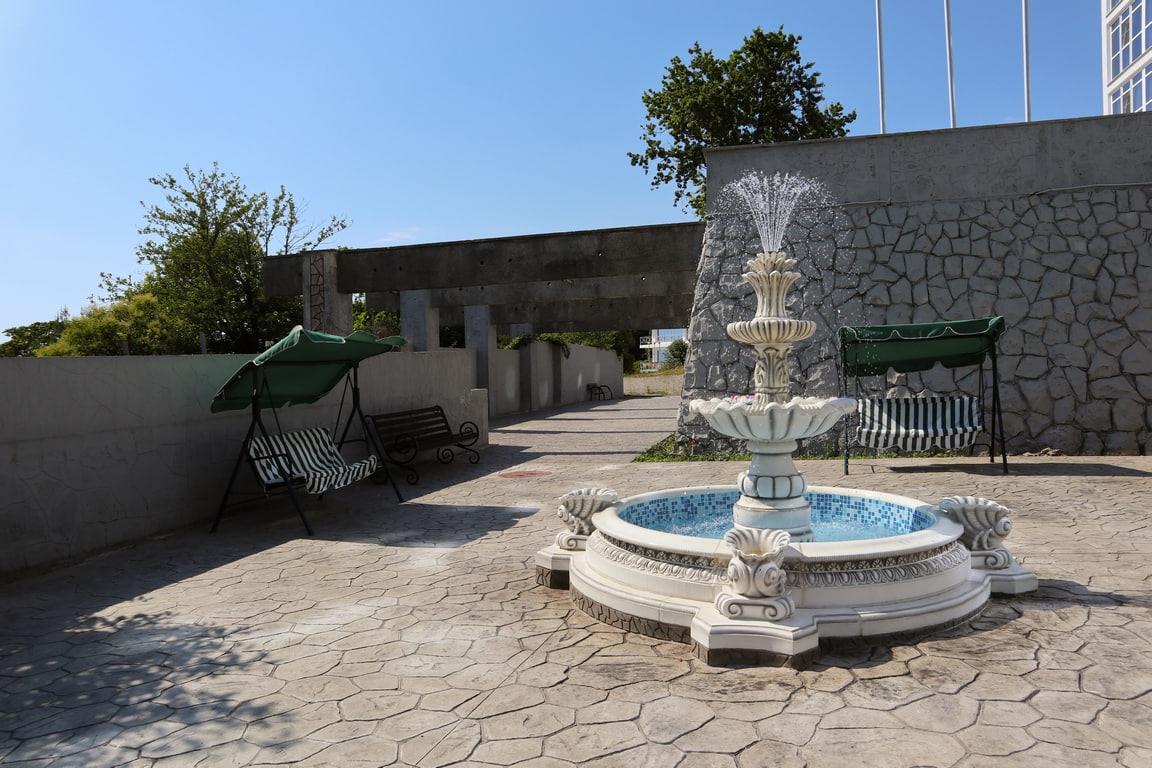 К услугам гостей номерной фонд, ресторан, бар, детская комната, детская площадка, экскурсионные программы, трансфер, охраняемая парковка, Wi-Fi и собственный оборудованный чистый пляж протяженностью 88 м