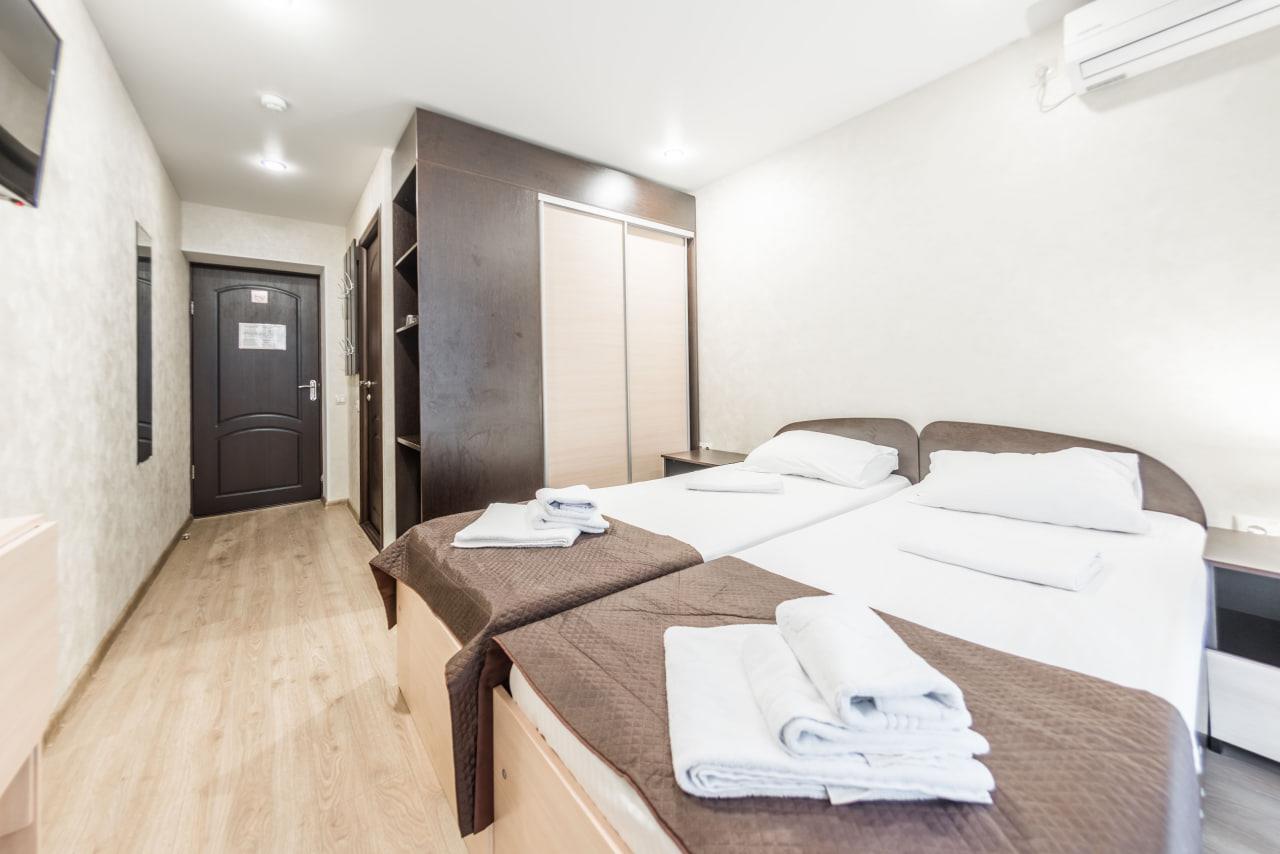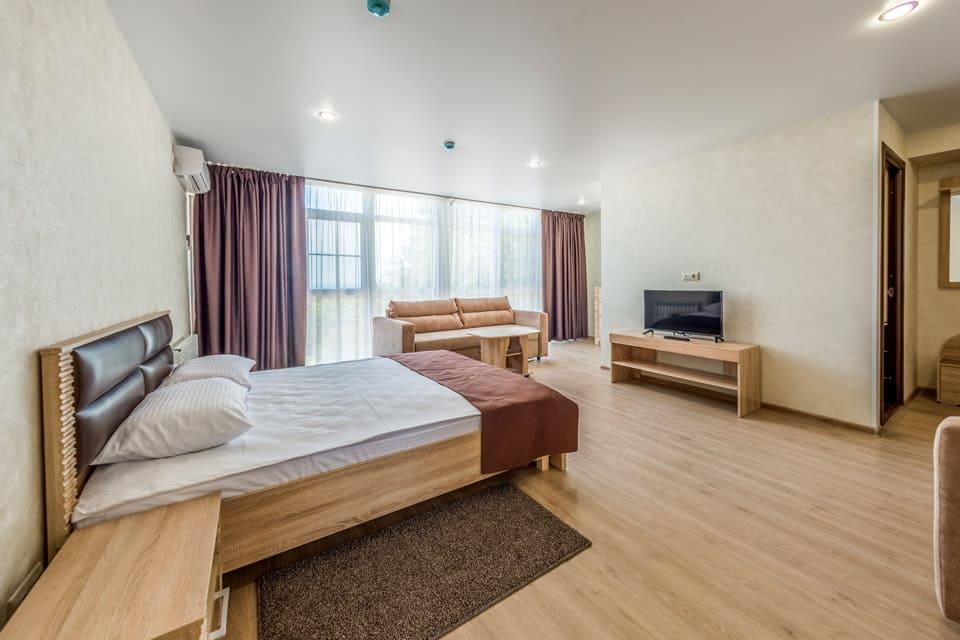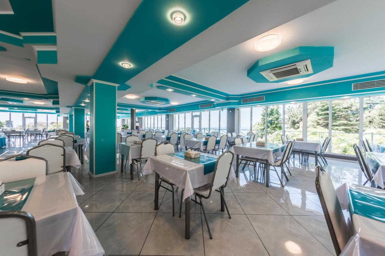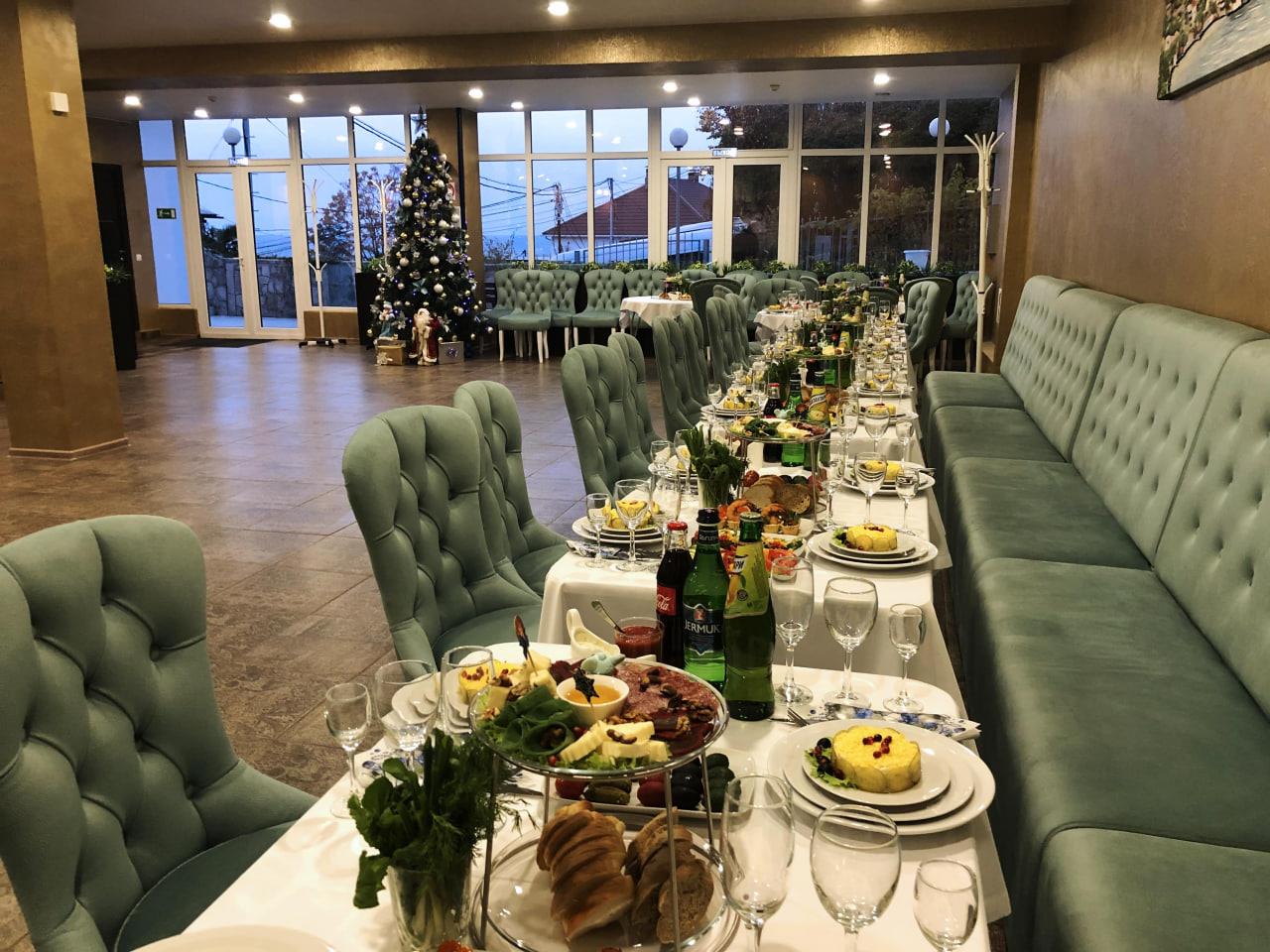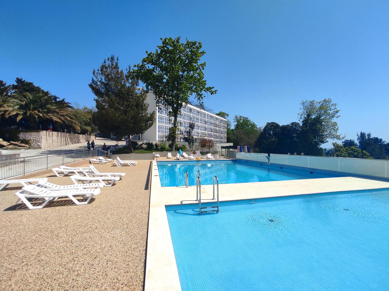 К услугам гостей номерной фонд, ресторан, бар, детская комната, детская площадка, экскурсионные программы, трансфер, охраняемая парковка, Wi-Fi и собственный оборудованный чистый пляж протяженностью 88 м