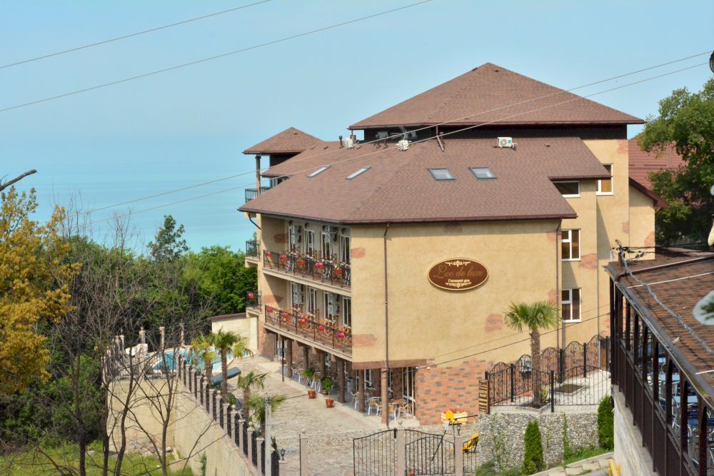 Отель "Лоо Де Люкс" располагается в курортном микрорайоне Лоо, в 3 минутах прогулочным шагом до моря. Напротив отеля функционирует знаменитый комплекс АкваЛоо. В шаговой доступности находятся кафе, столовые и продуктовые магазины. Номерной фонд находится в 4-этажном гостиничном корпусе. Большинство номеров располагают балконами с потрясающим видом на море и на бассейн. На 1 этаже работает ресторан с террасой, где гостям предлагаются завтраки, комплексные обеды и ужины a la carte (блюда кавказкой, итальянской, европейской и японской кухни). Любители поплавать оценят большой открытый бассейн с шезлонгами во дворе отеля. Есть парковка для автомобилей. Для детей оборудована игровая площадка